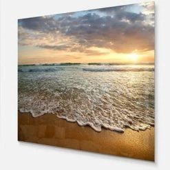 Design Art Art ‘Bright Cloudy Sunset In Calm Ocean’ Seashore Metal Wall Art – 20 X 12