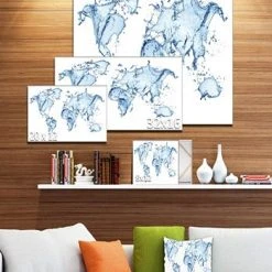 Design Art Art World Map Water Splash Abstract Map Canvas Art Print – 32 X 16