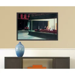 A moody contrast of light and dark this iconic painting has just enough detail and just enough hidden that the viewer is invited to create their own narrative for these characters and this setting.