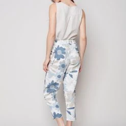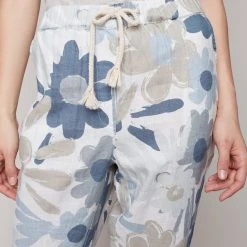 These printed linen blend pull on cropped jogger pant are super comfortable and are great for running errands on weekends, or dressing up for a weekend brunch. They feature a pull-on elastic waist with a drawstring, above ankle length with a tapered straight leg.