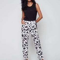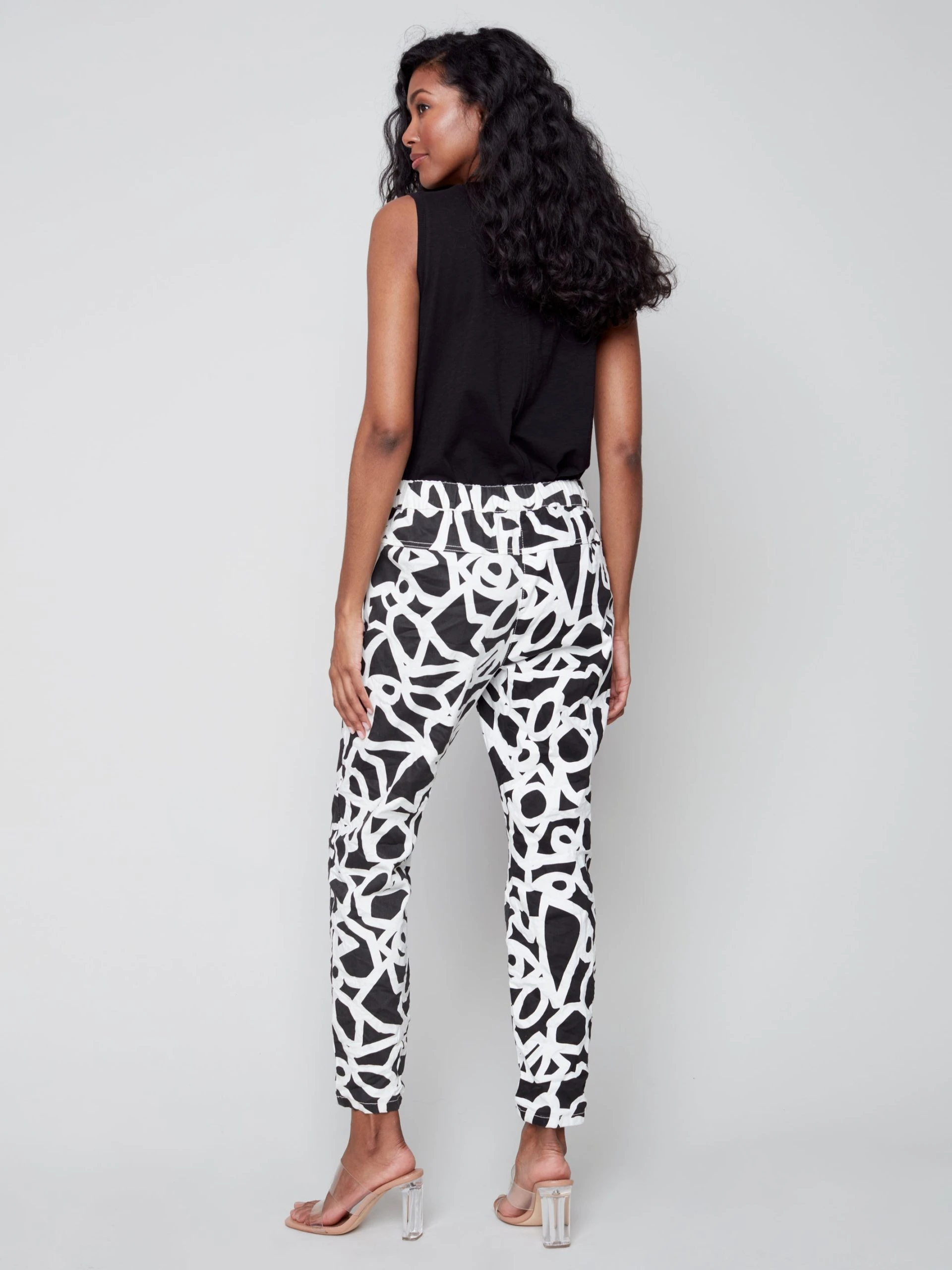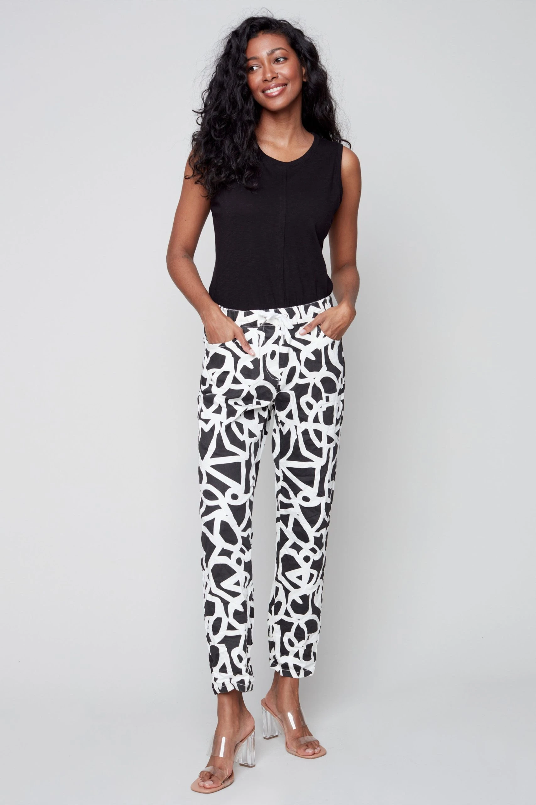 These printed crinkle bengaline pull on cropped jogger pant are super comfortable and are great for running errands on weekends, or dressing up for a weekend brunch. They feature a pull-on elastic waist with a drawstring, above ankle length with a tapered straight leg.