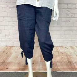 Look great and stay cool in our linen Capri with Tie Hem! With cropped length, pockets, and a relaxed fit, this breezy garment features a stylish tie hem and pull-on waist for a comfortable, flattering look.