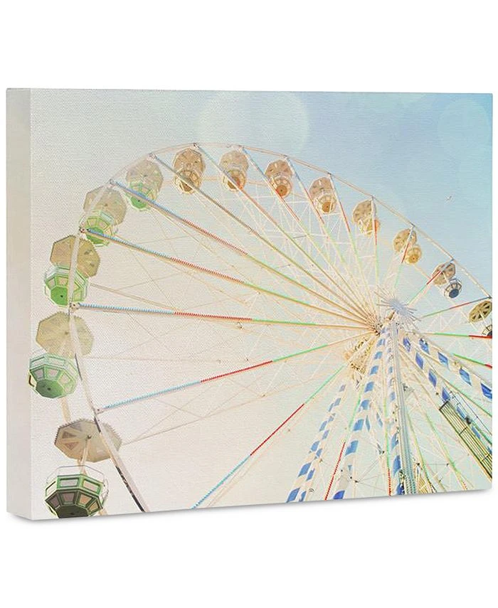 Subtle shades and geometric shapes accent a skyward view of the whimsical ride in the Ferris Wheel canvas wall art by Happee Monkee from Deny Designs.