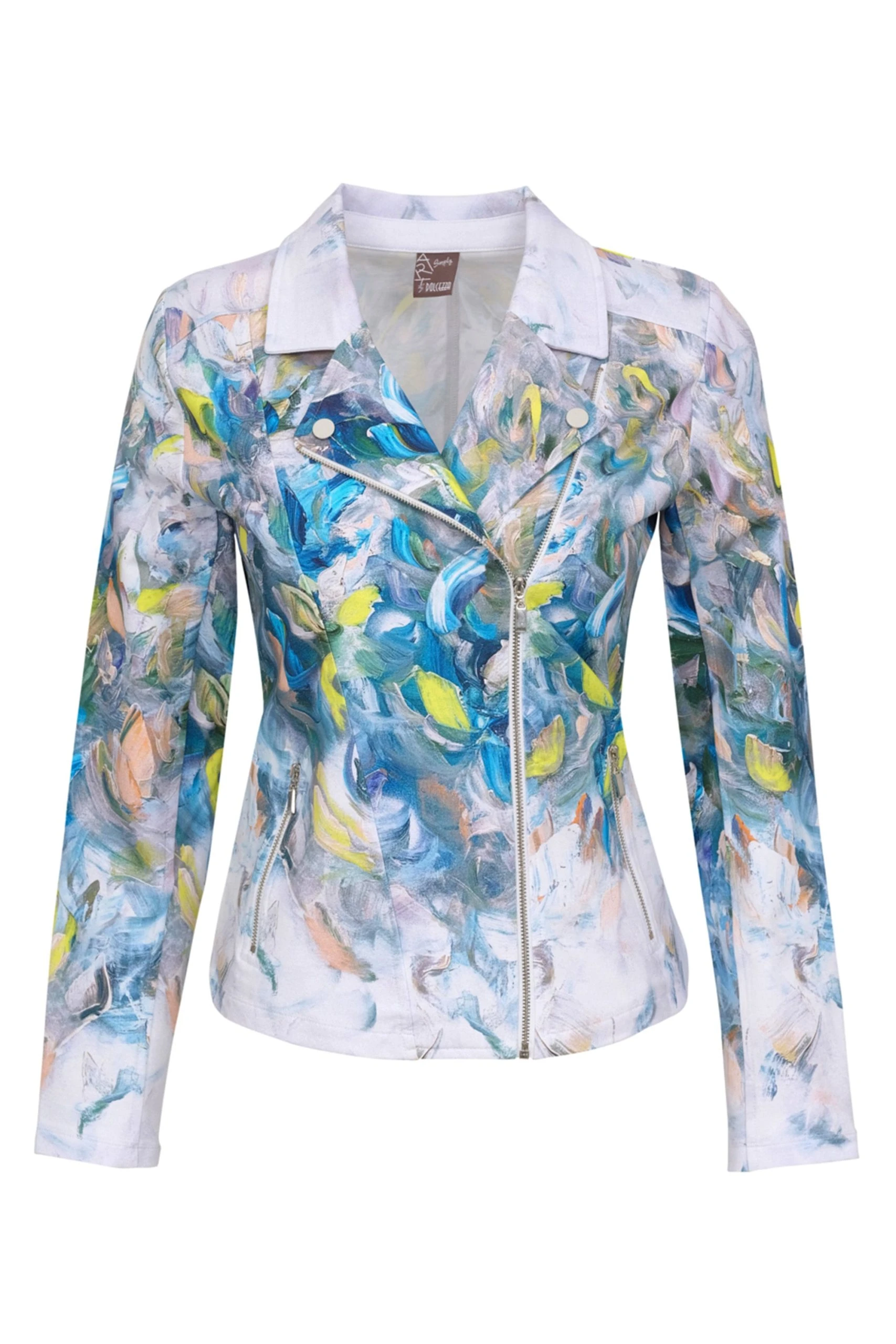 Add an edgy and artsy touch to your outfit with this jacket. It features a straight cut, metal stud details on the collar as well as two front pockets with zippers.