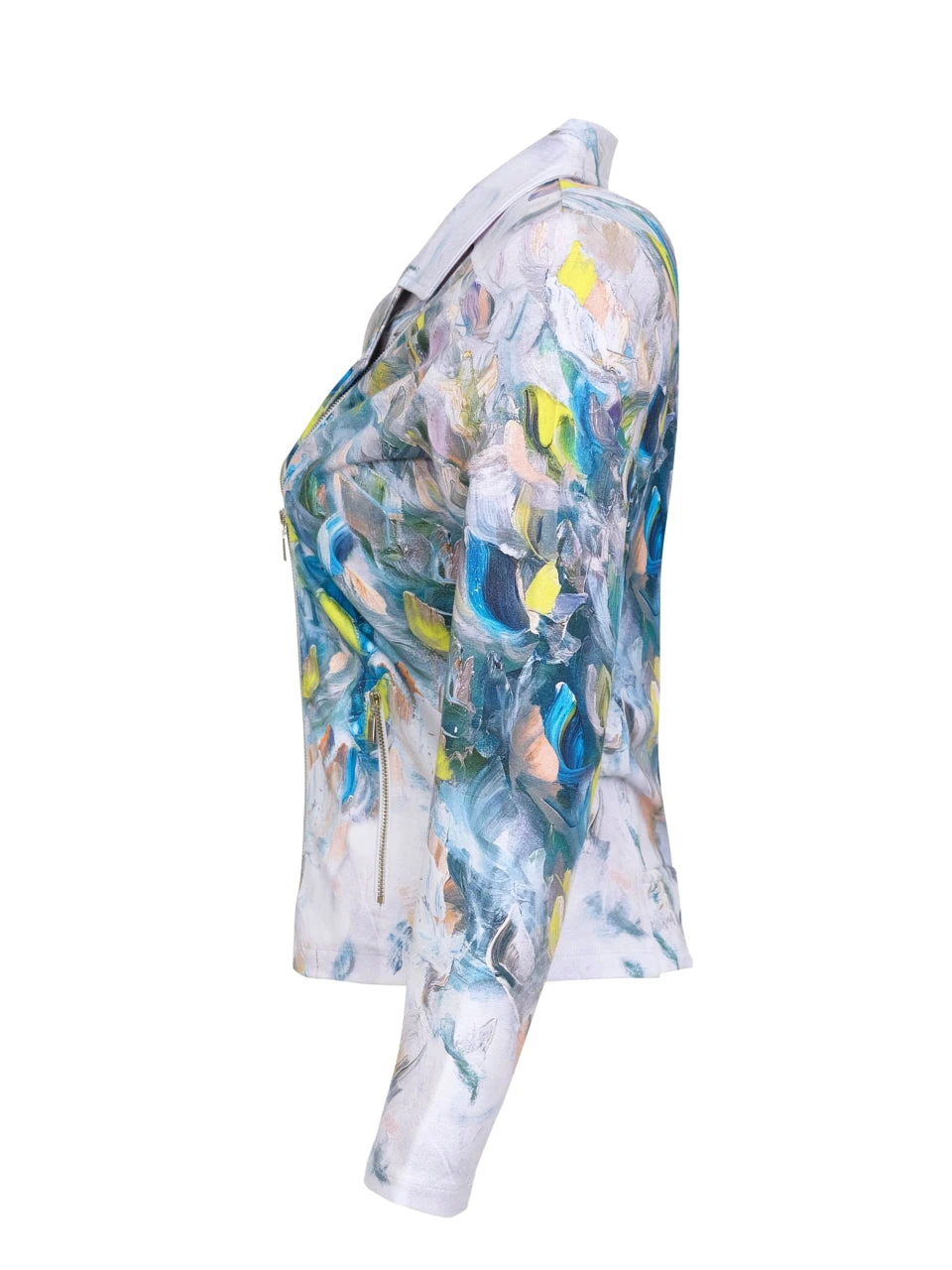 Add an edgy and artsy touch to your outfit with this jacket. It features a straight cut, metal stud details on the collar as well as two front pockets with zippers.
