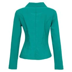 This sophisticated and classic style of this jacket is timeless and classic. The lapel collar, three button closure, long sleeves, and front pockets complement the vibrant colour of the jacket. It’s so versatile it can be worn with pants, jeans or skirts.