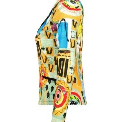 This printed knit jacket is the perfect combination of edgy and sophistication. The art inspired print complements the classic style, lapel collar and silhouette of the jacket. It’s so versatile it can be styled with jeans, blouses, skirts, or whatever your heart desires!