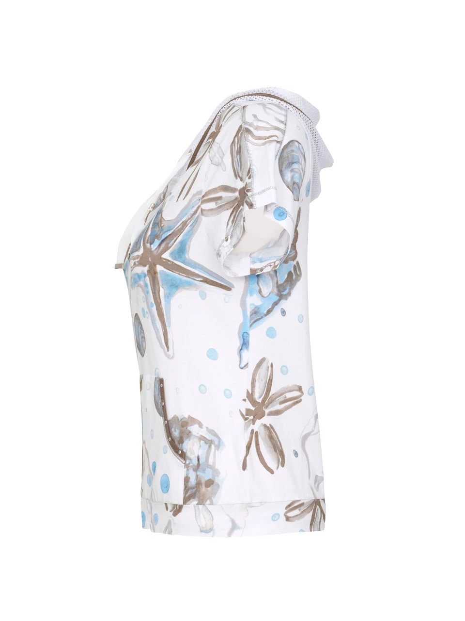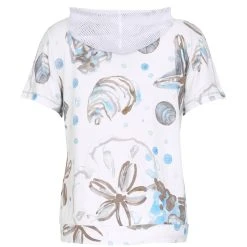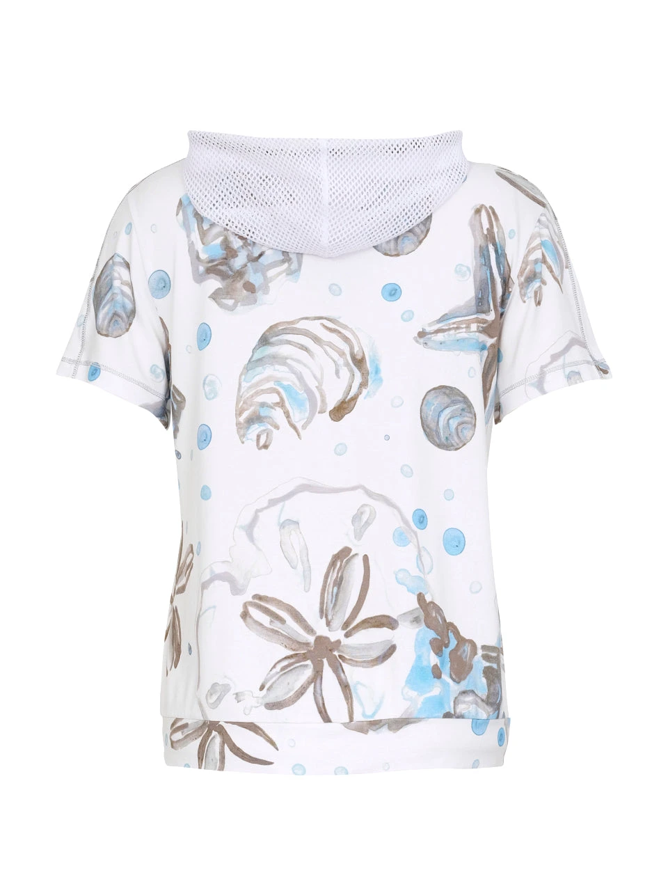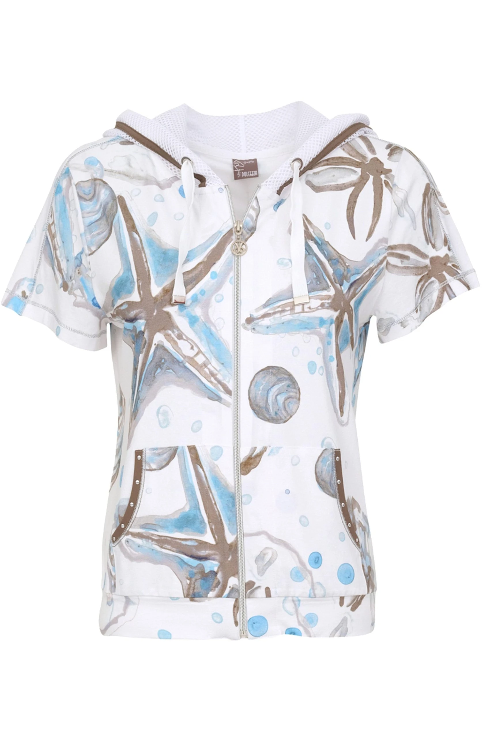 Bring the beach to you! This Dolcezza art print by June Erica Vess in this short sleeve hoodie jacket has drawstrings at the hood and a zipper front. Making it the perfect layering top for spring and summer.