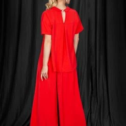 These wide leg flowy pants are perfect to bring on vacation or to wear at the wineries while staying comfortable yet stylish. They feature a flat front waistband with an elastic at the back, ankle length and a wide leg that creates a beautiful, flowy silhouette.