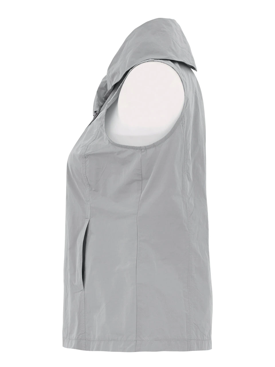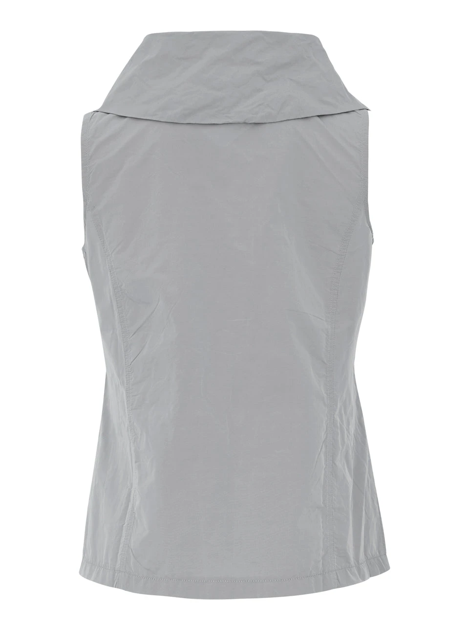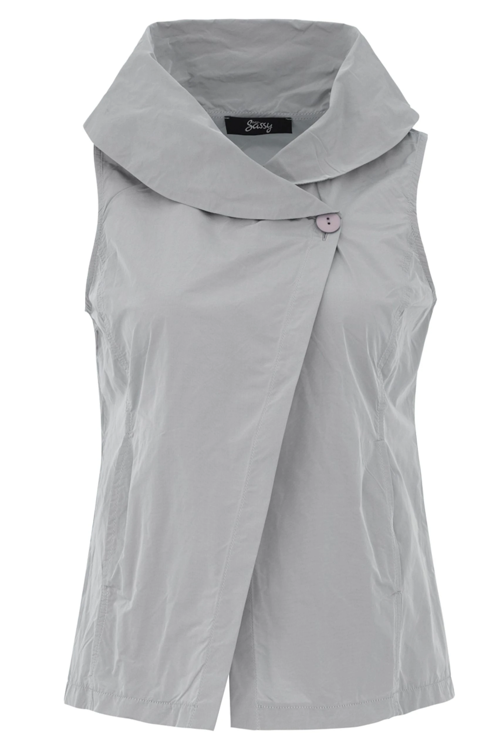 Designed by EverSassy the Silver Screen vest is a woven vest featuring side pockets, a high collar, and an off-set button closure for a unique style.
