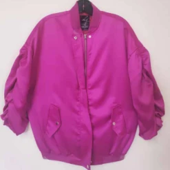 Look cool while staying comfy in this casual fuchsia bomber jacket! Perfect for everyday wear, it’s a stylish staple for your wardrobe!