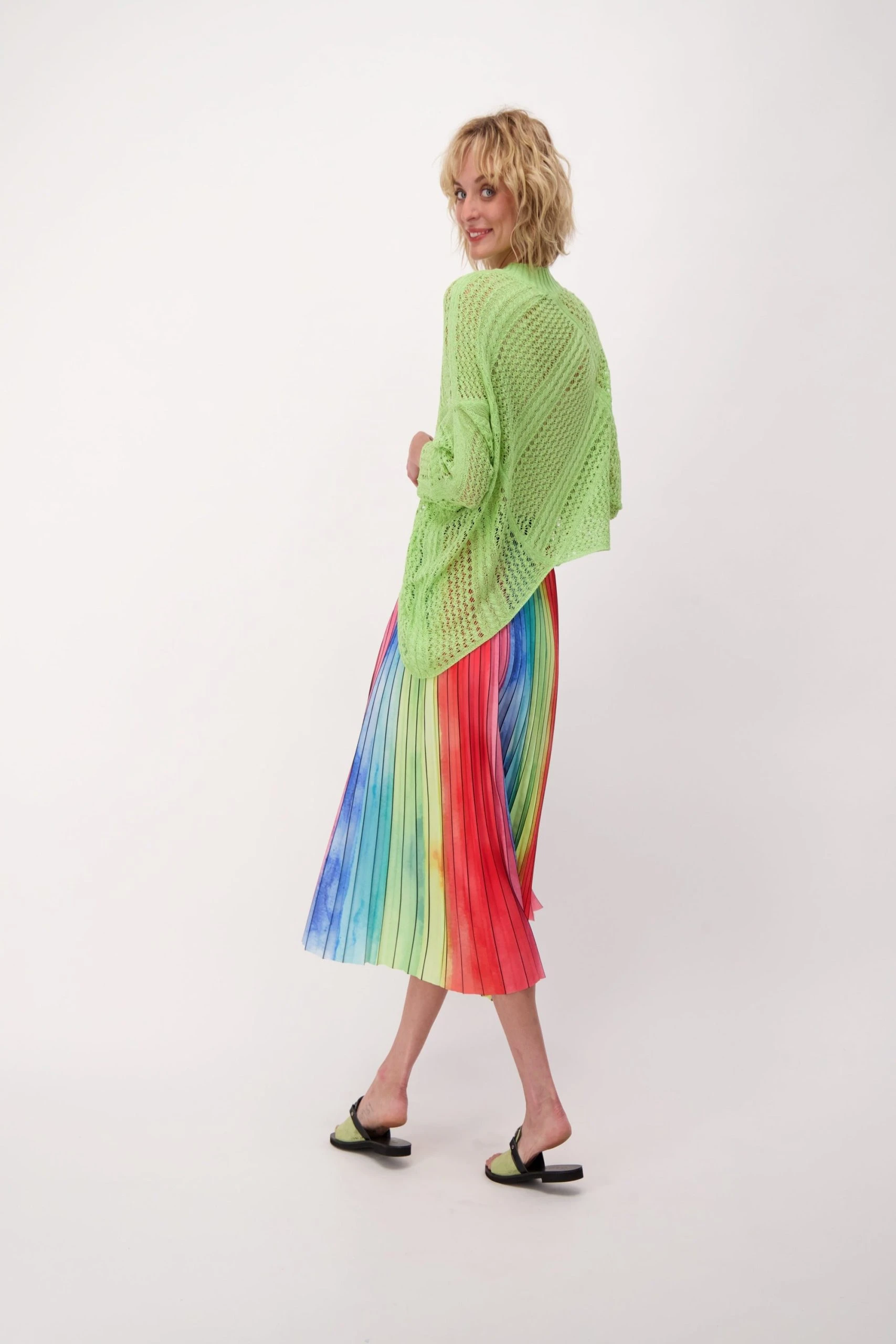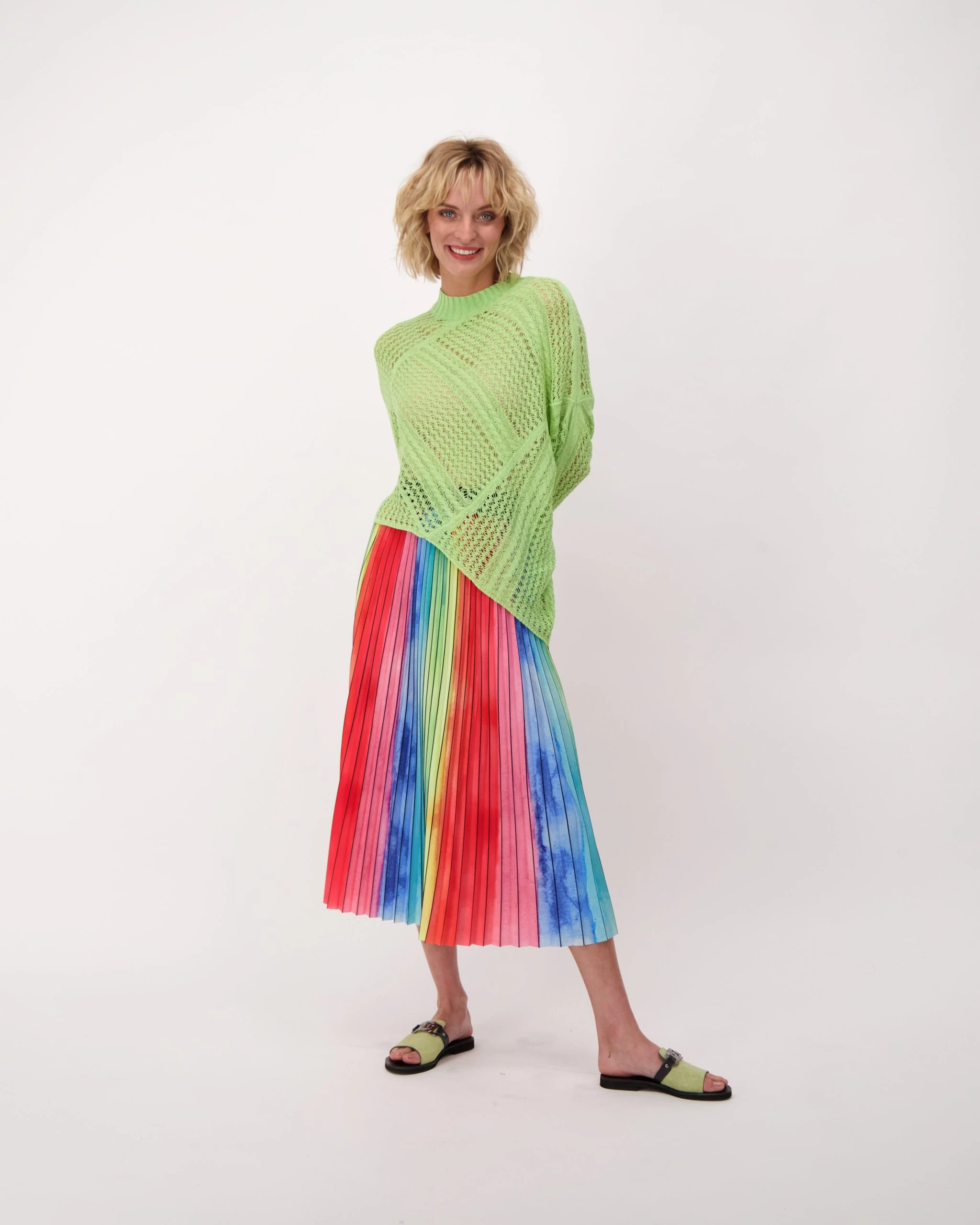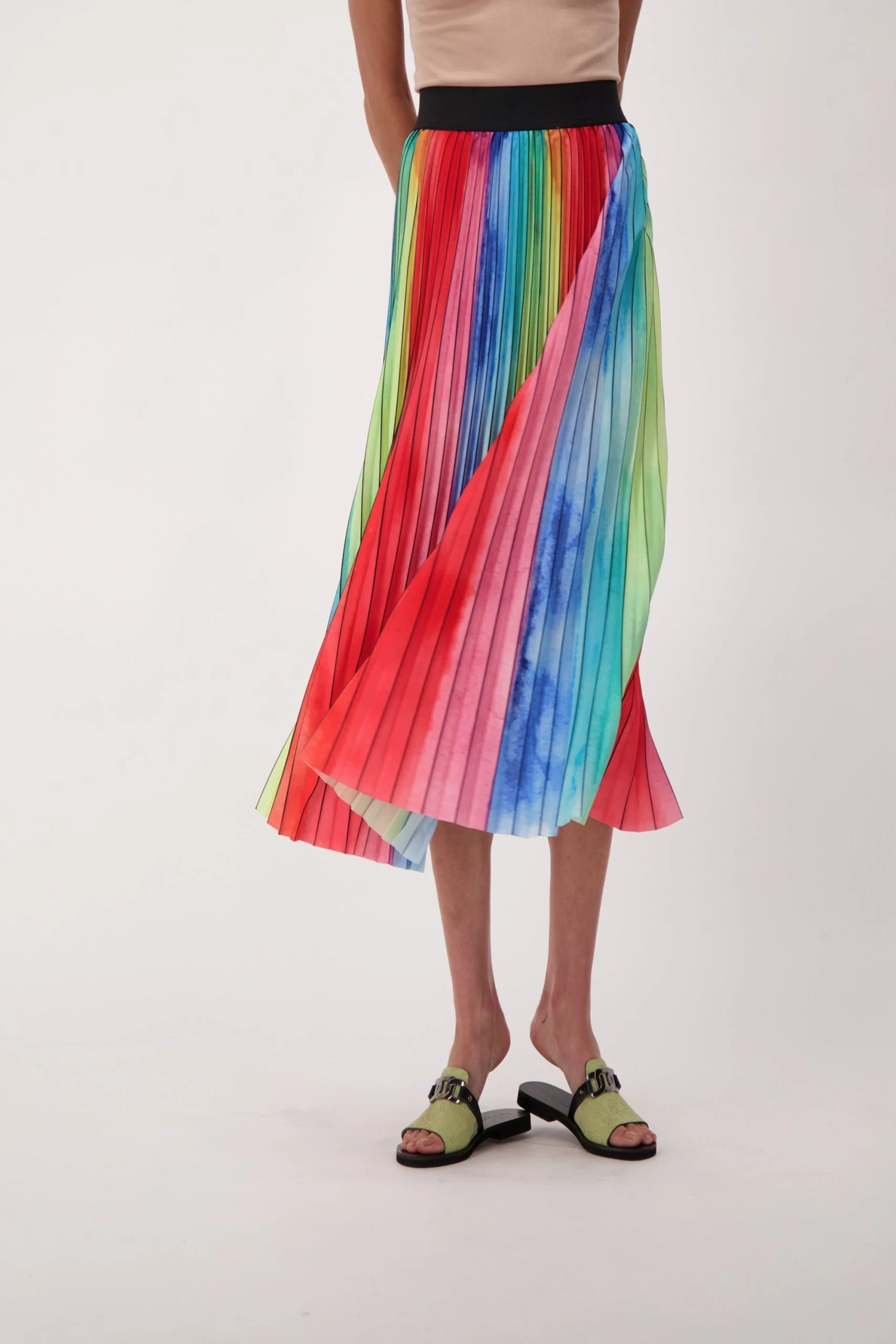 This pleated maxi skirt with a colourful print is the perfect way to step up your summer style game. It features an elastic waistband for easy slip on styling. Pair it with a basic tee and some strappy sandals and you have the perfect summer look.