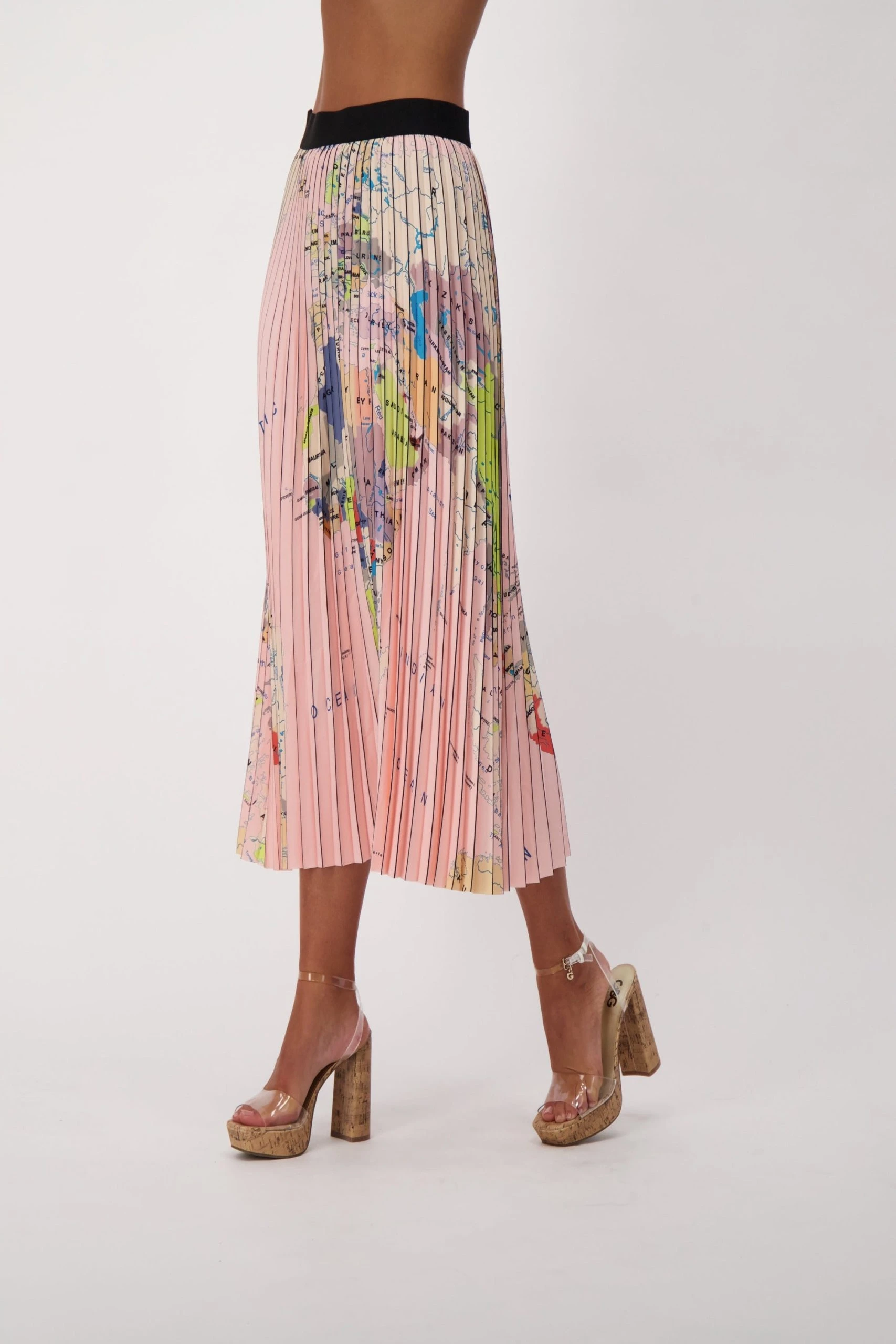 This pleated maxi skirt with a colourful print is the perfect way to step up your summer style game. It features an elastic waistband for easy slip on styling. Pair it with a basic tee and some strappy sandals and you have the perfect summer look.