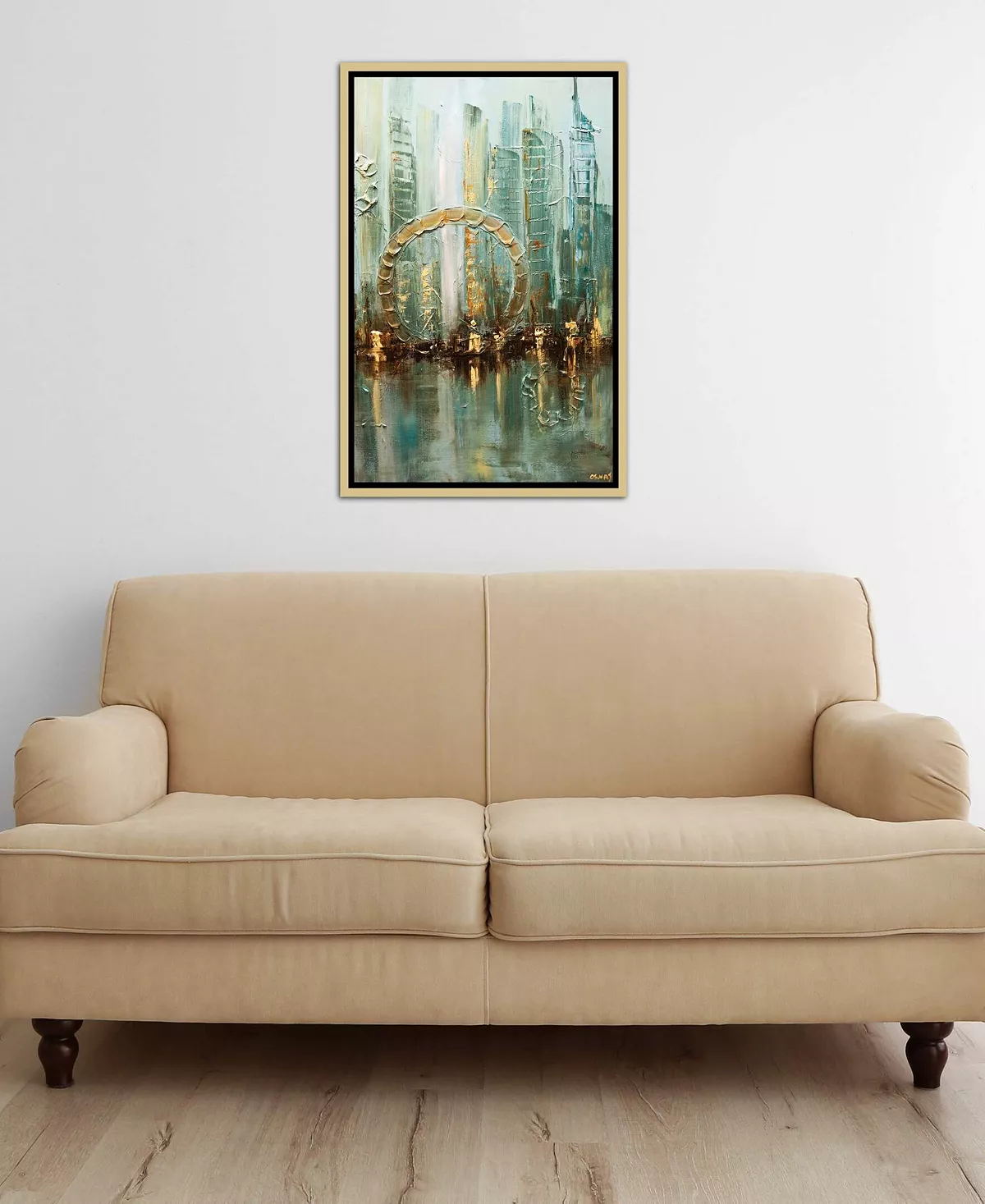 - The art is inset, leaving a 3/8″ space between the art and frame, creating a “floating” illusion
