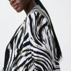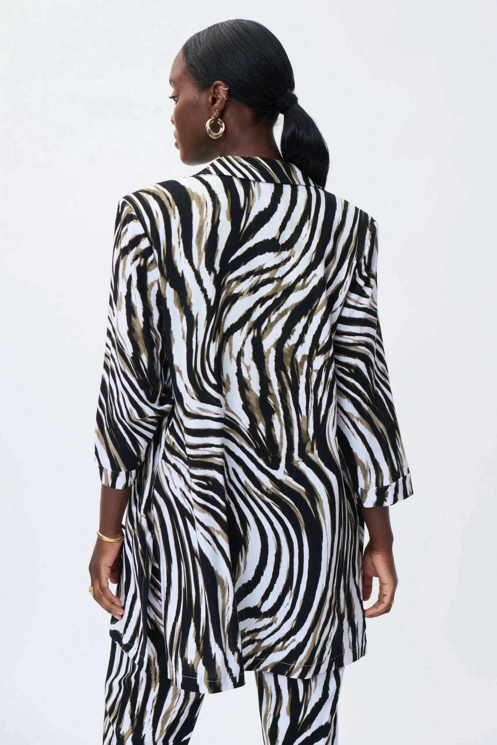 This fun animal print blazer will bring set your apart from the heard. It features three-quarter length sleeves, an elongated silhouette, cut for an at-ease fit with notch lapels this is timeless with a fun print.