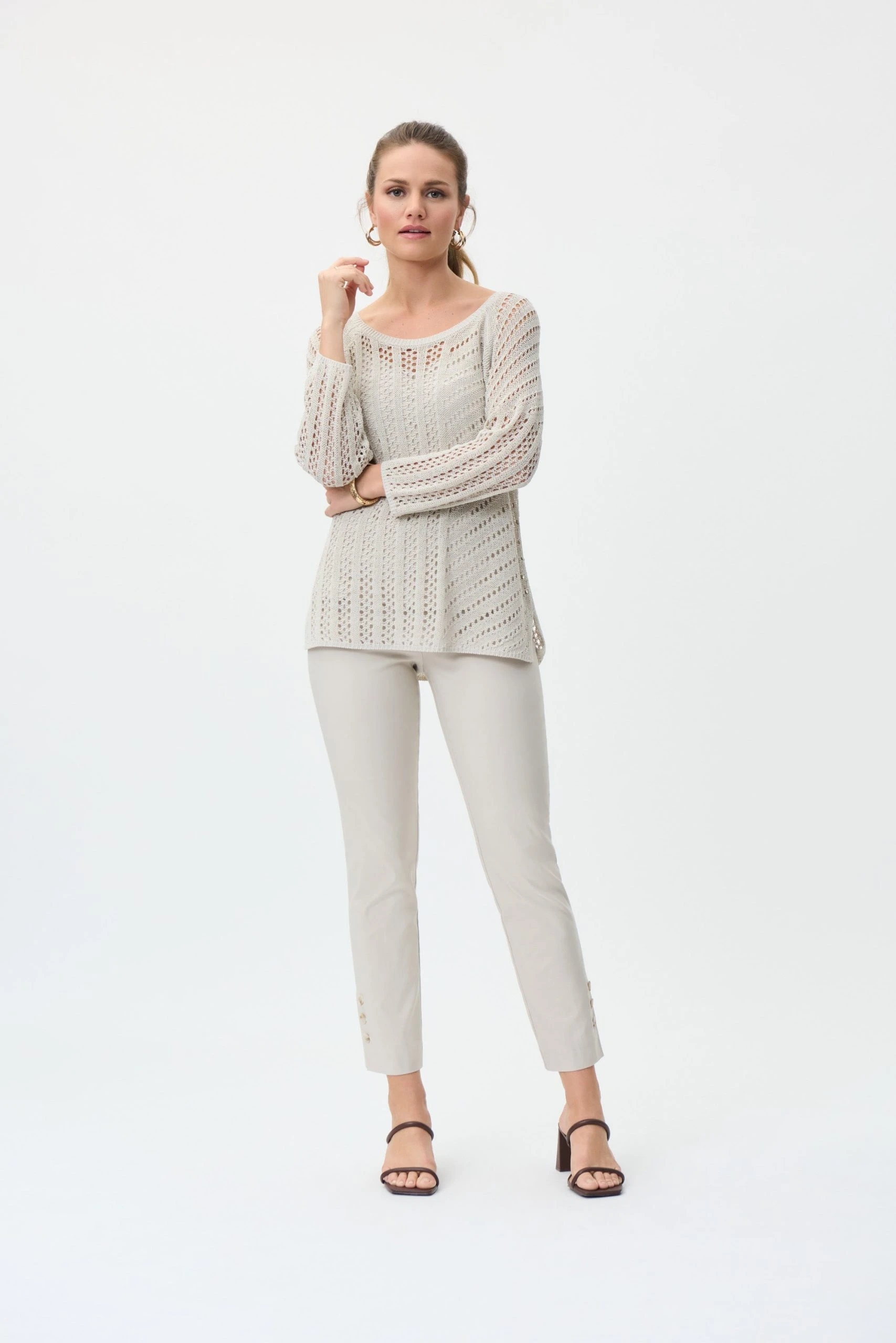 With a classy row of buttons lining the cuffs of these Joseph Ribkoff pants, these are a classic choice to wear to work or on a weekend outing. These are built with a flattering contour waistband, making them comfortable and stylish.