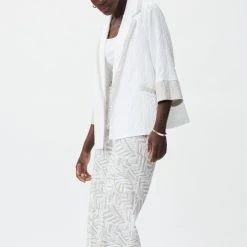 This is the perfect transitional piece for your wardrobe. This jacket is perfect for those in-between days when you need a little extra coverage. The three-quarter sleeves and colour-block pattern are both timeless and sartorial. The notched collar gives this jacket a touch of sophistication.