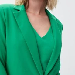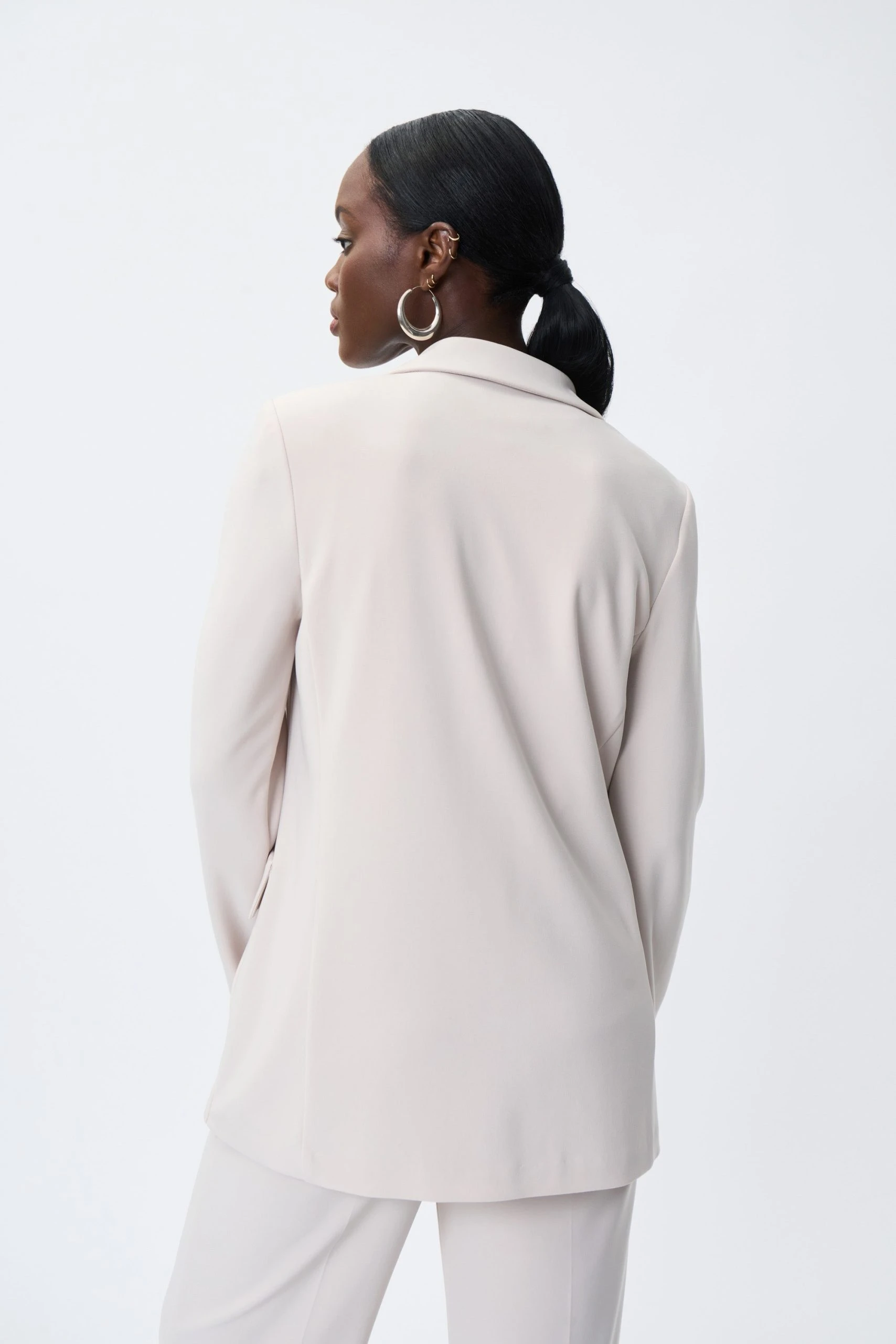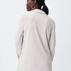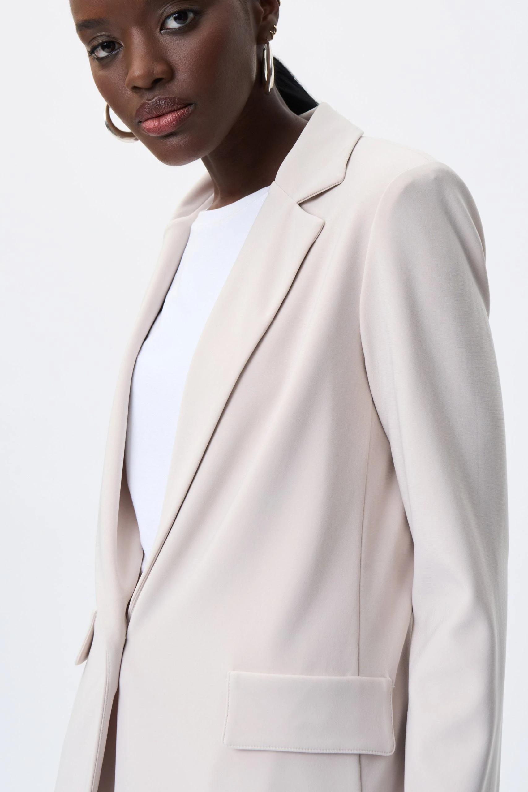 Effortlessly easy style starts here. This design is cut from a silky knit fabric. It boasts a slightly longer-than-average hemline in a straight fit, a single button closure and front flap pocket.