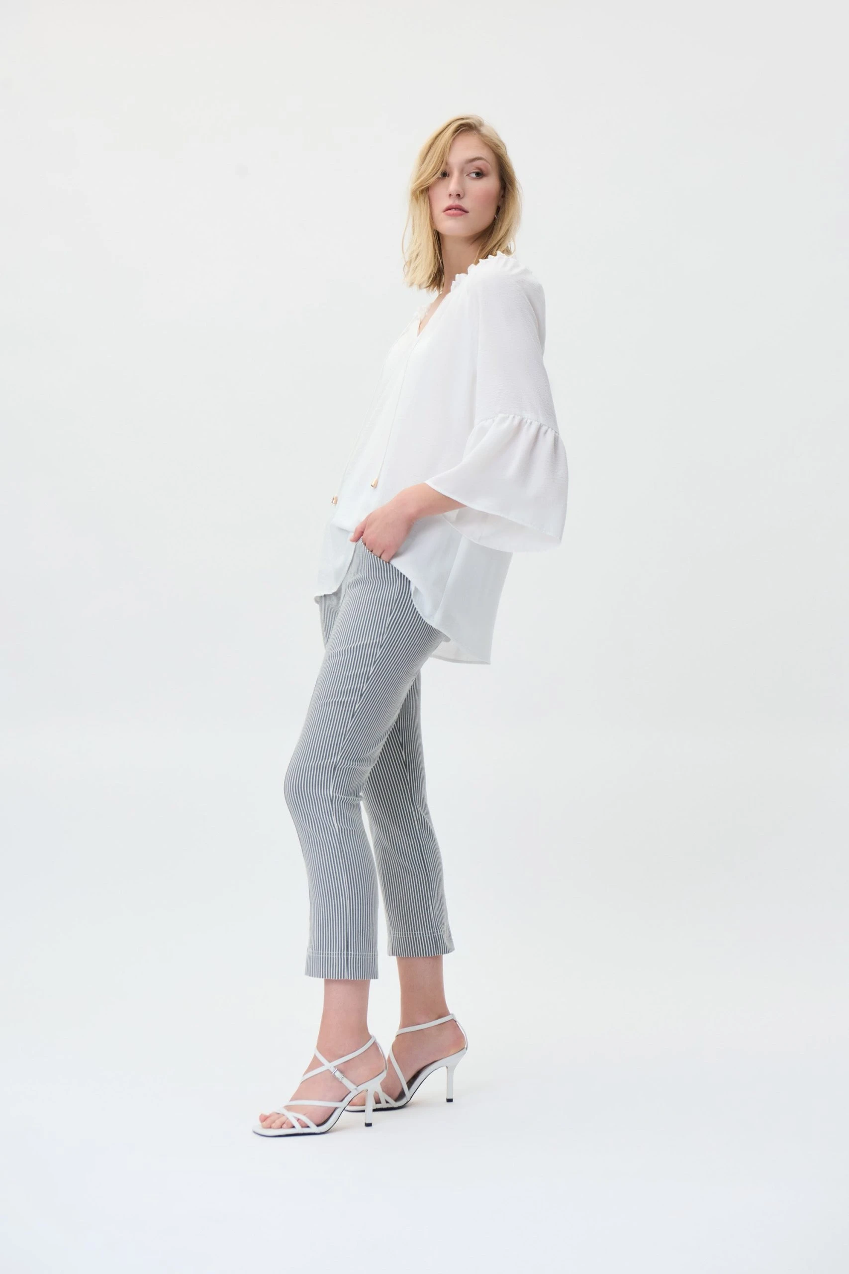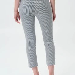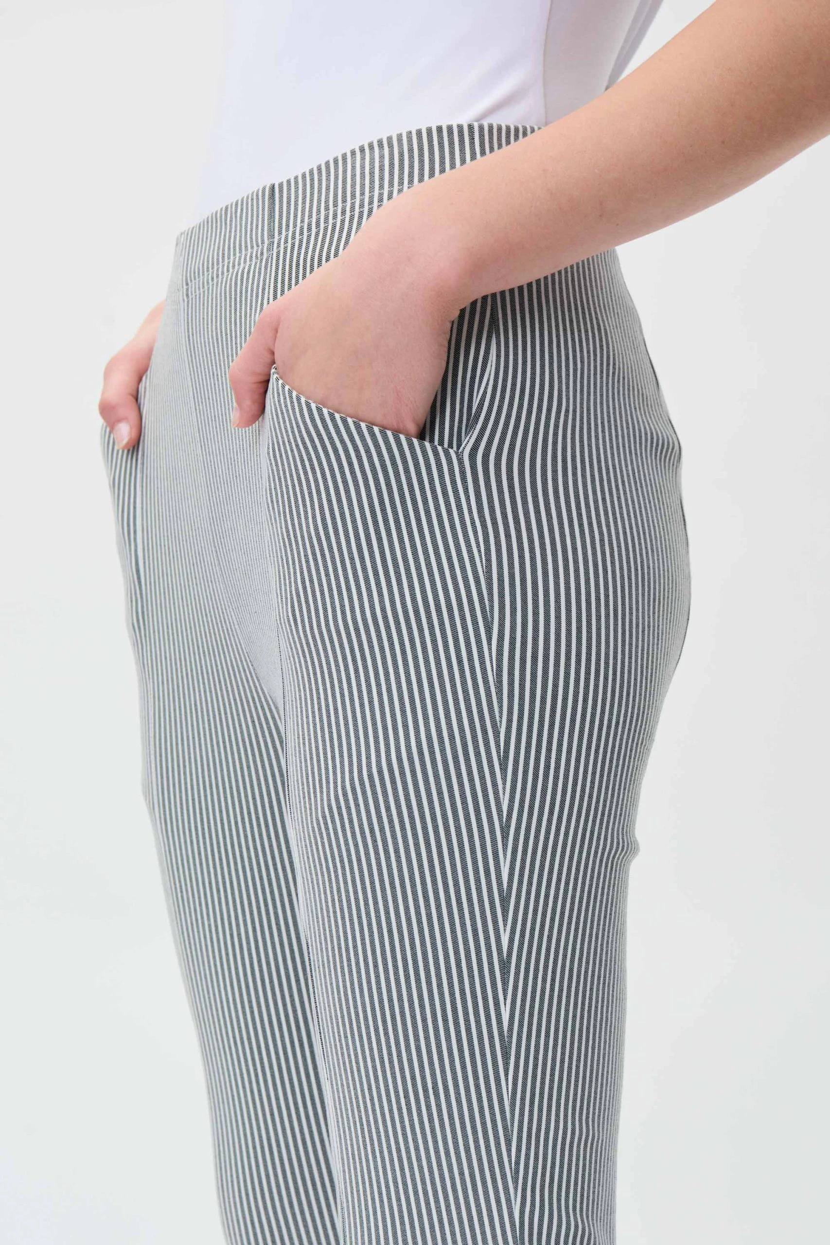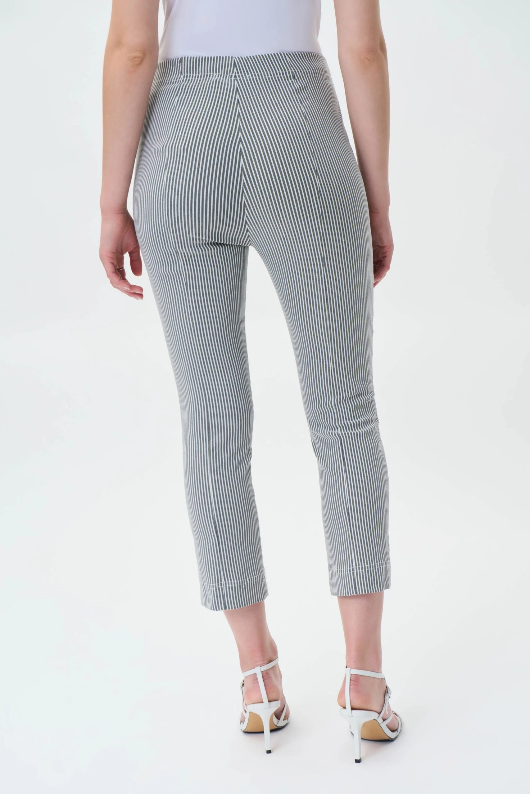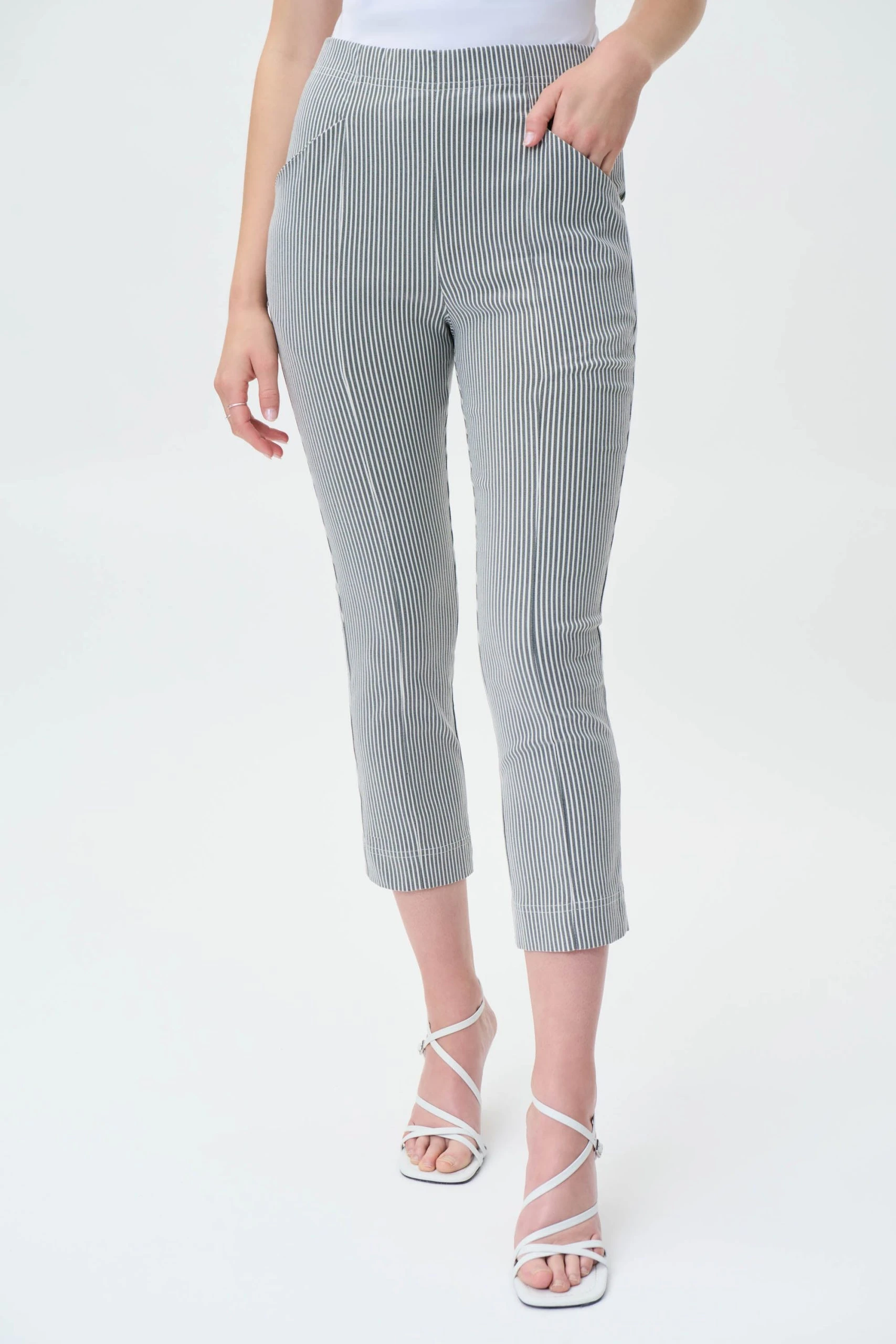 These striped Joseph Ribkoff cropped microtwill pants are sure to become a seasonal staple. They come crafted with pockets in the front, a contour waistband, high-rise fit and are cropped at the ankle.