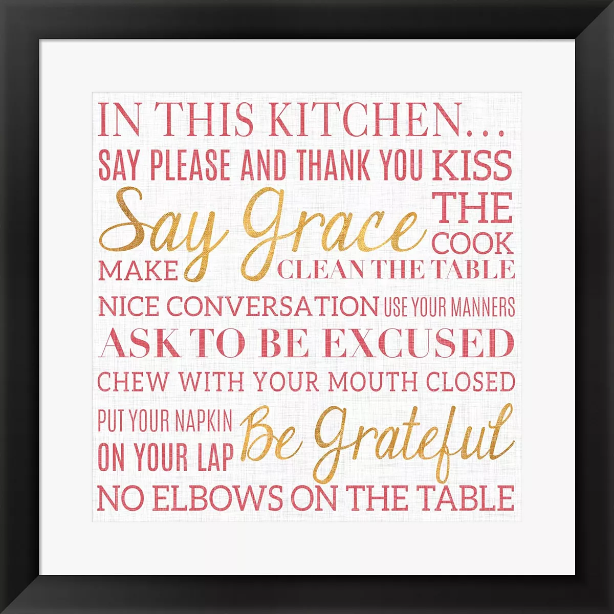 In This Kitchen by SD Graphics Studio is a high quality piece of framed artwork. The finished size of this piece is 19.5″ X 19.5″. It has a Slim Solid Black Flat with Satin Finish frame, is single matted and finished with high quality Glass. Hand made in the USA. 100% Satisfaction Guaranteed.