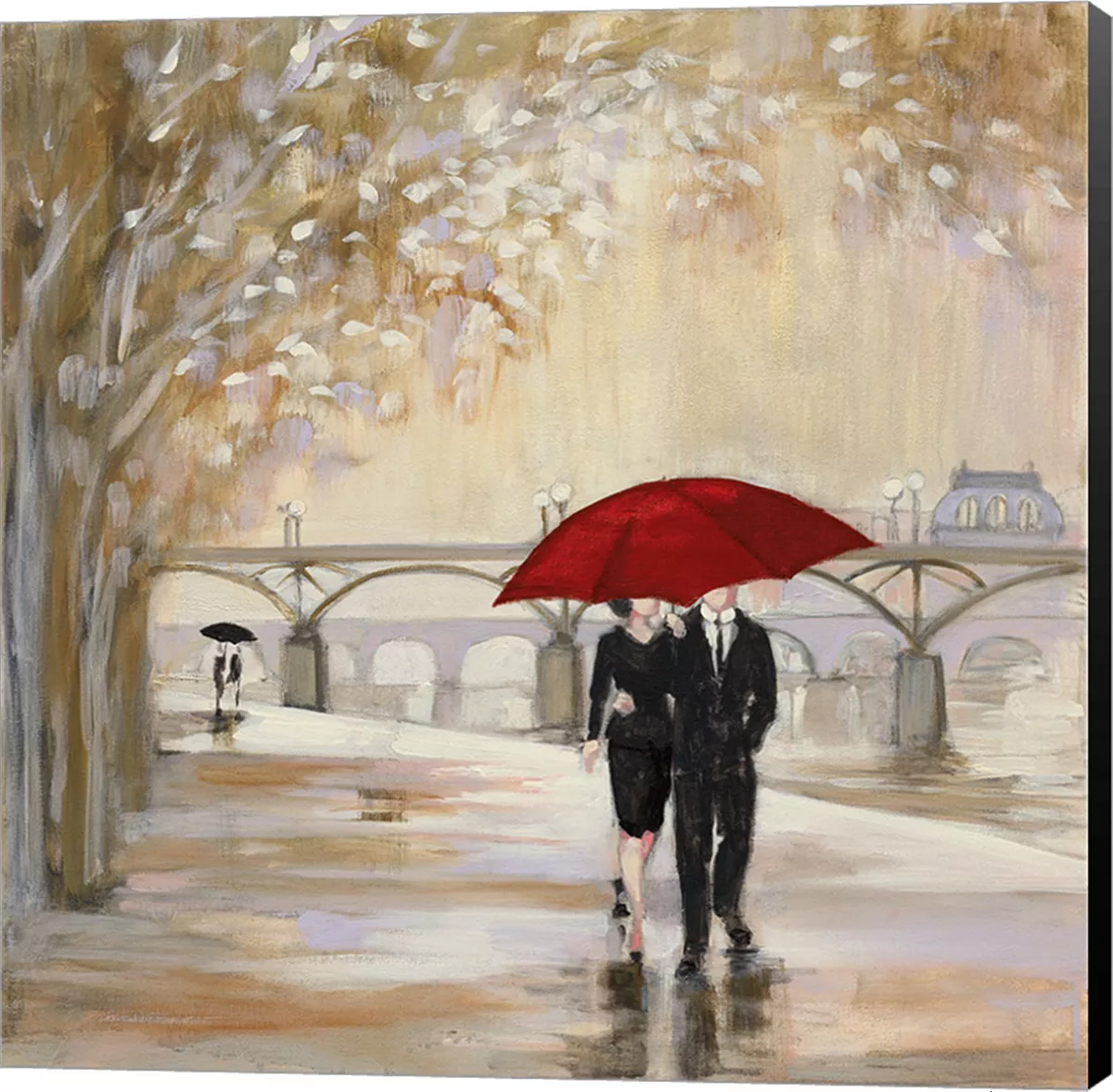 Romantic Paris III Red Umbrella by Julia Purinton is a high quality piece of canvas artwork. The finished size of this piece is 12″ X 12″, and it has a depth 1.5″ with black painted sides. There is a UV protective coating over the entire image, and it is ready to hang on your wall with no hardware required. Hand made in the USA.