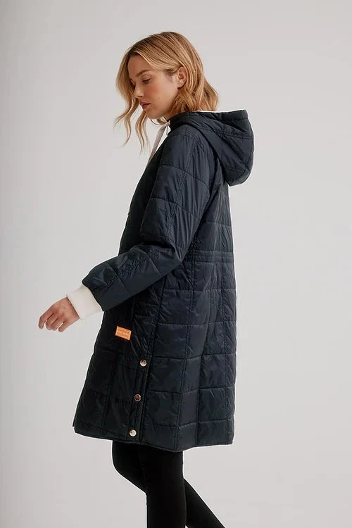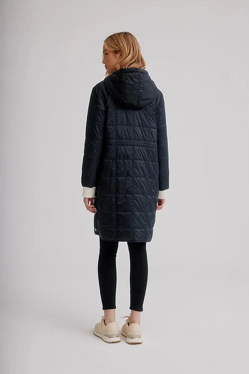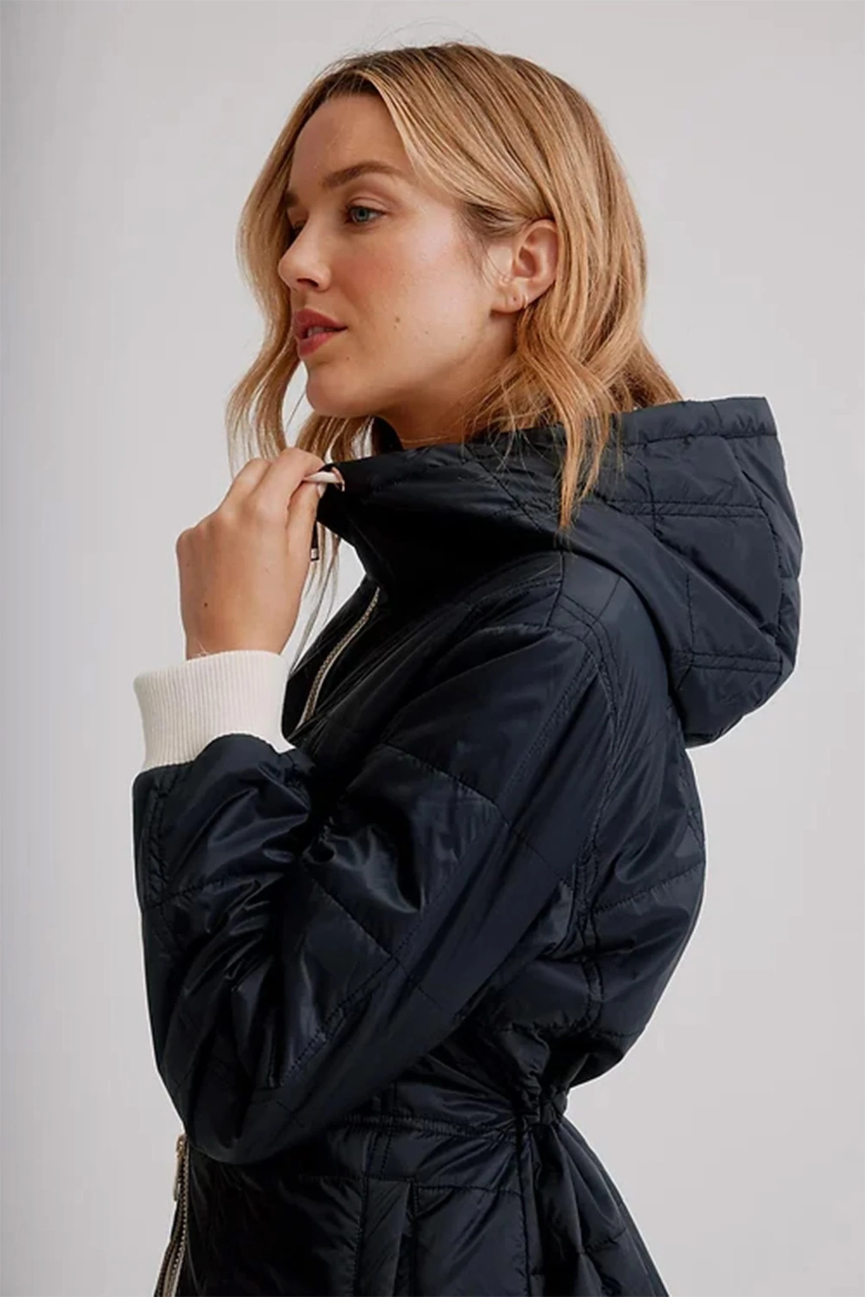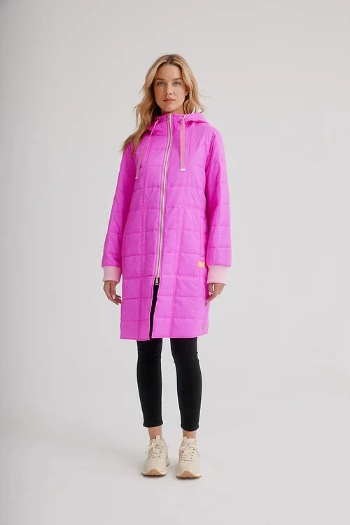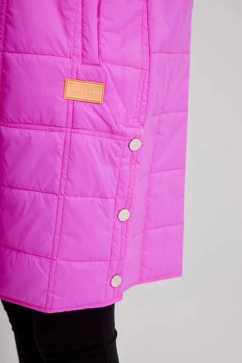 Celebrate the flourishing season with our vibrantly colourful spring styles. This light weight quilted puffer jacket is perfect for the end of winter weather. It has drawstrings at the hood, a front zipper, long sleeves, with side pockets, and side buttons at the hem for a more flexible look.