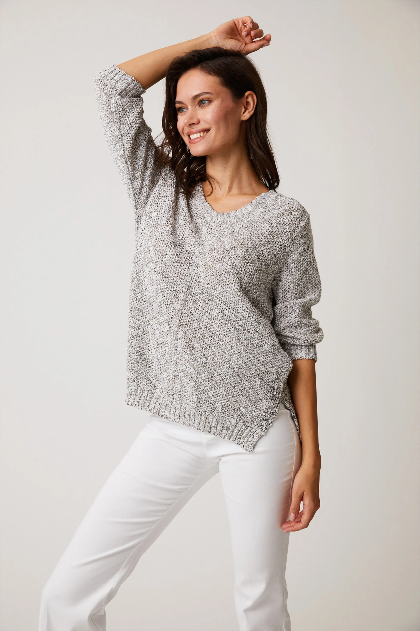 Timeless and effortless is what comes to mind with this Parkhurst V-neck sweater. It comes with a ribbed hemline and cuffs, a split at the them and a relaxed fit. Perfect to wear with a pair of jeans for a classic casual look.