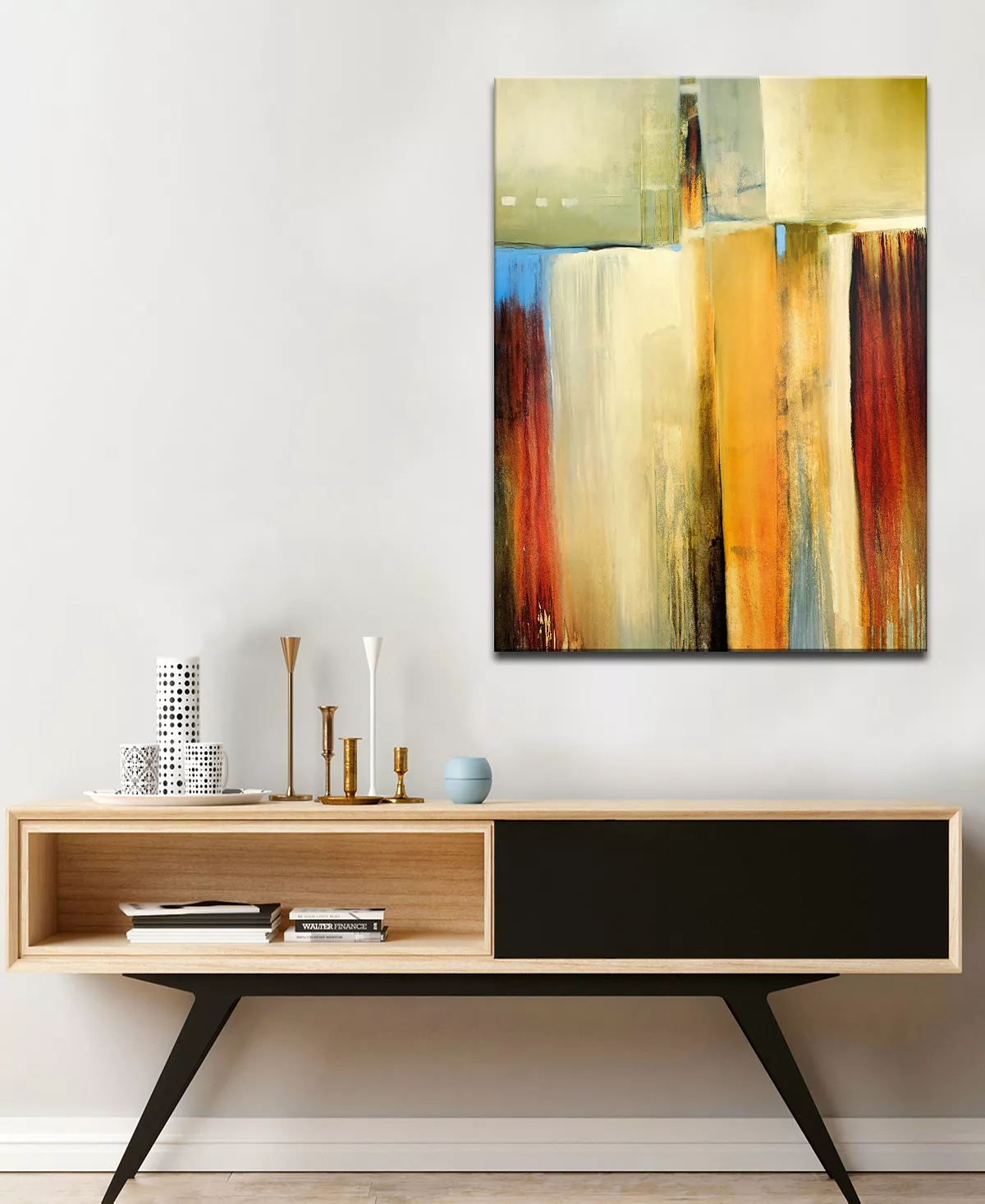 The vivid vertical flair of the Ready2HangArt ‘Abstract’ canvas wall decor print uplifts a room with a handsome range of mixable tones.