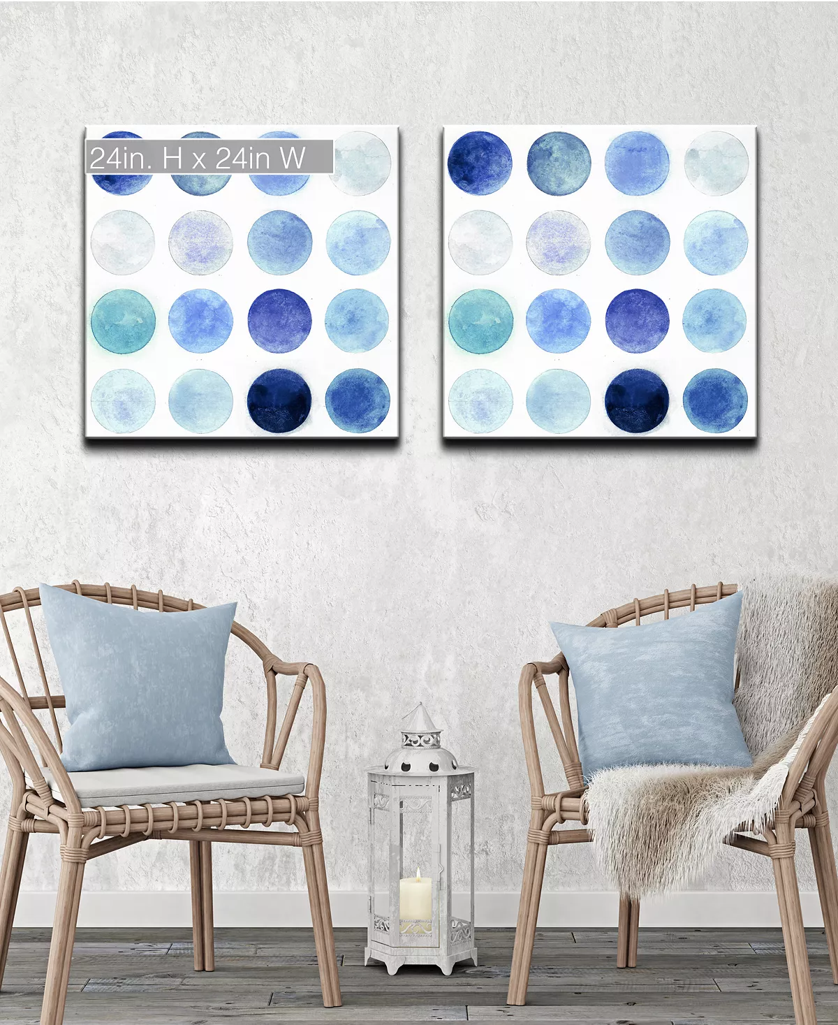“Display the many Lunar on your wall with ‘Blue Lunar I/II’. This 2 panel wall decor features the different colors of the moon stretched across a diptych canvas.”