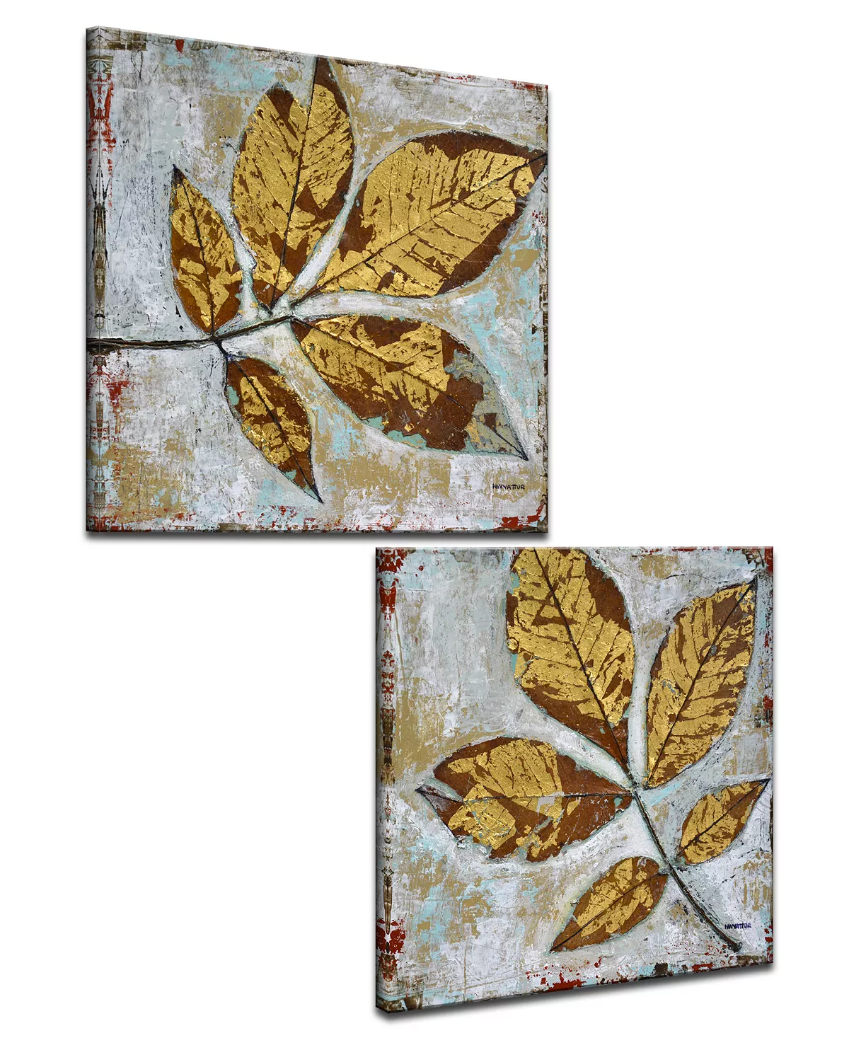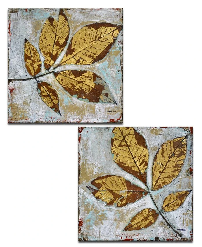 Enhance your home decor with ‘ Gilded Fall Leaves’. This 2 panel wall decor features a look at autumn leaves on a diptych canvas.