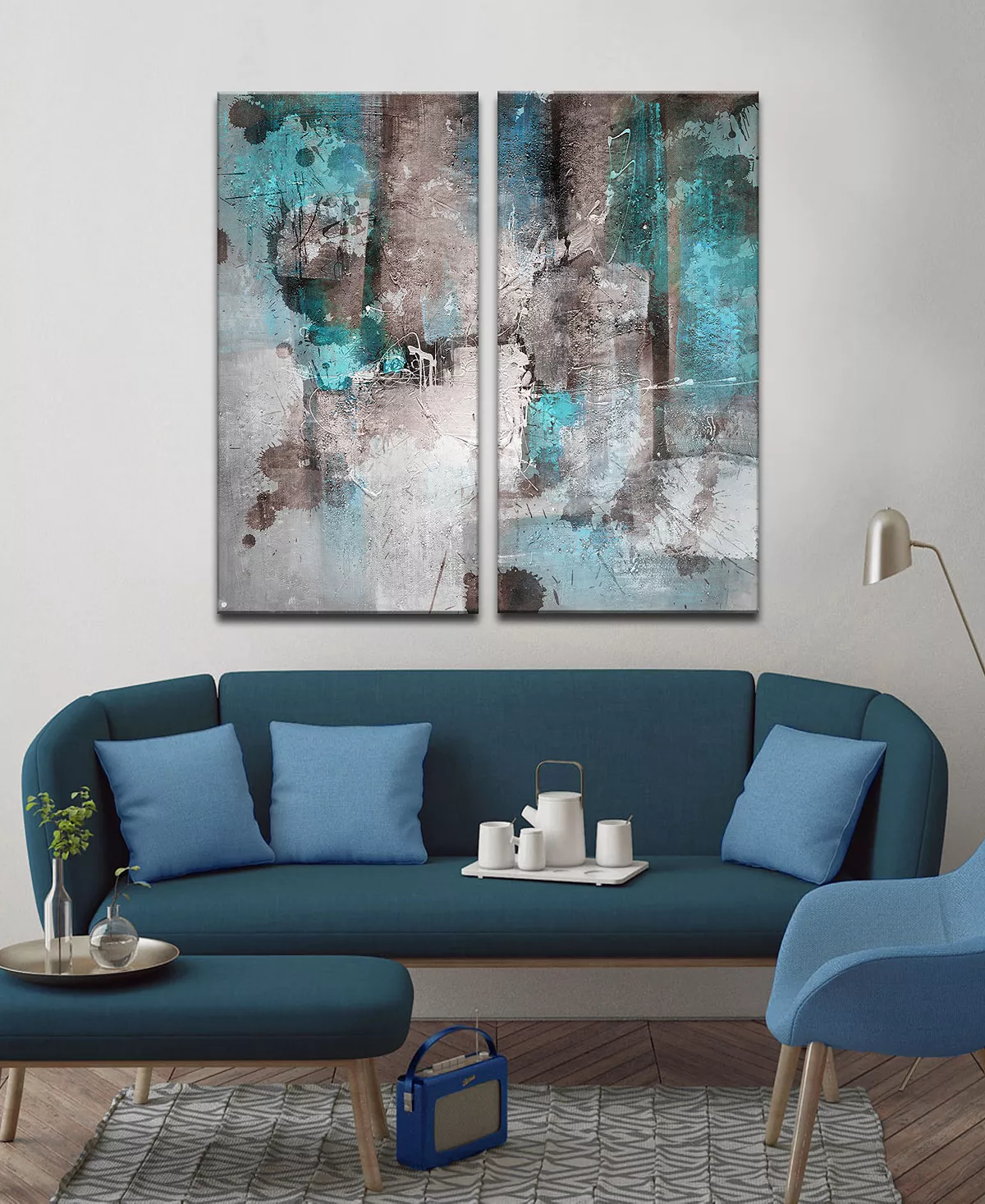 Make a striking decorative statement in your home or office with the cerulean blue, gray and white abstract tones of the ‘Inkd XXVI’ canvas wall art set.