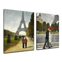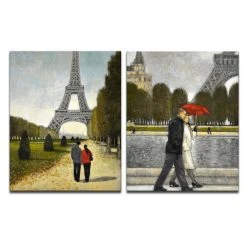 Feature a exotic abstract art piece on your wall with ‘Romantic Walk I/II’. This 2 panel art features the Paris Eiffel Tower with a couple taking a stroll. This diptych canvas artwork will add a cultured experience to your home.