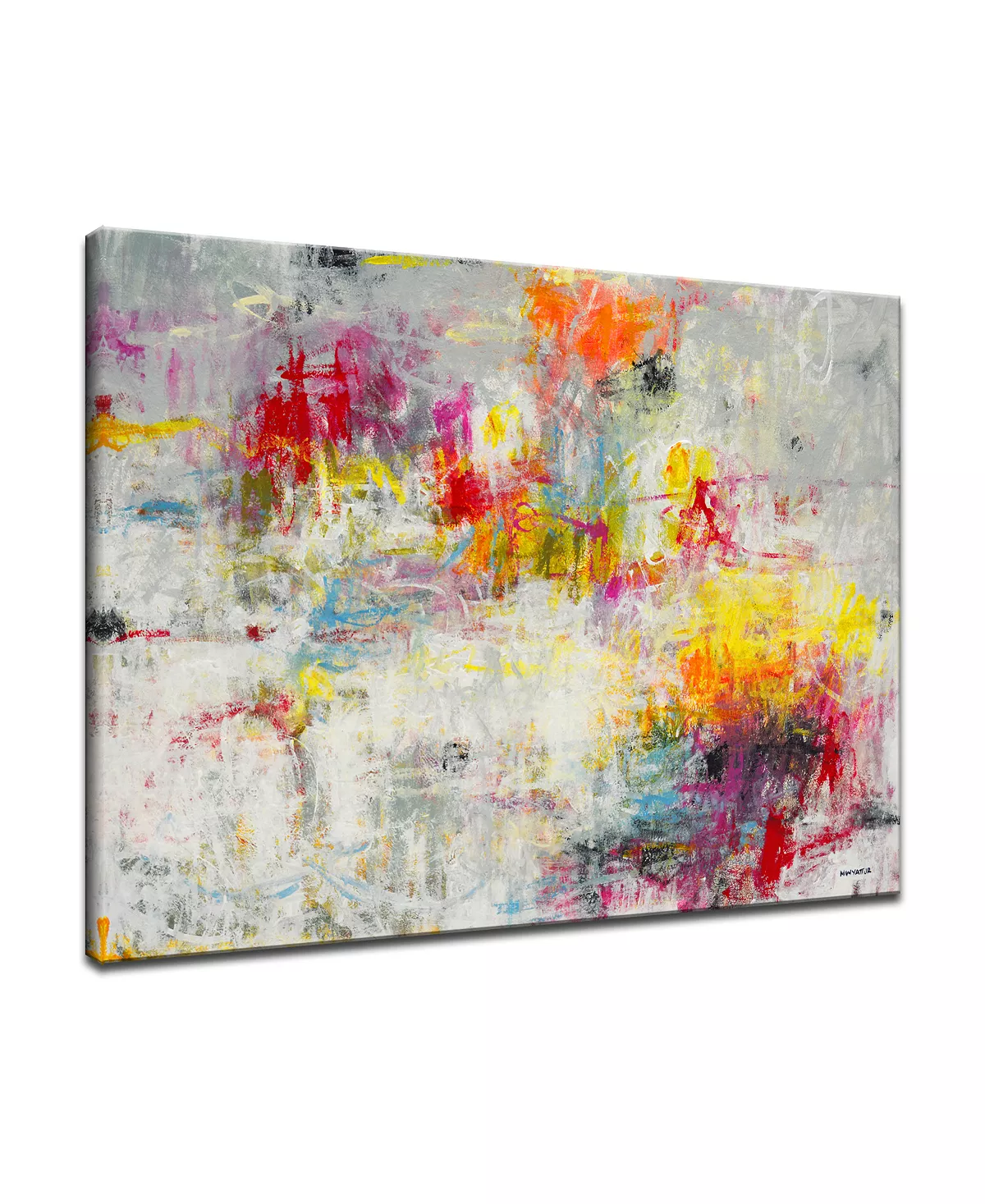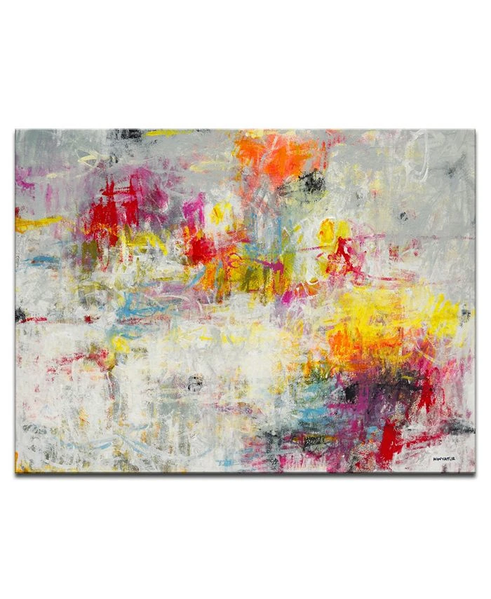 “Bring style to your walls with ‘Tie Dye’. This rainbow canvas wall décor features a multi color design of red, blue, and purple an converted on a white canvas.”