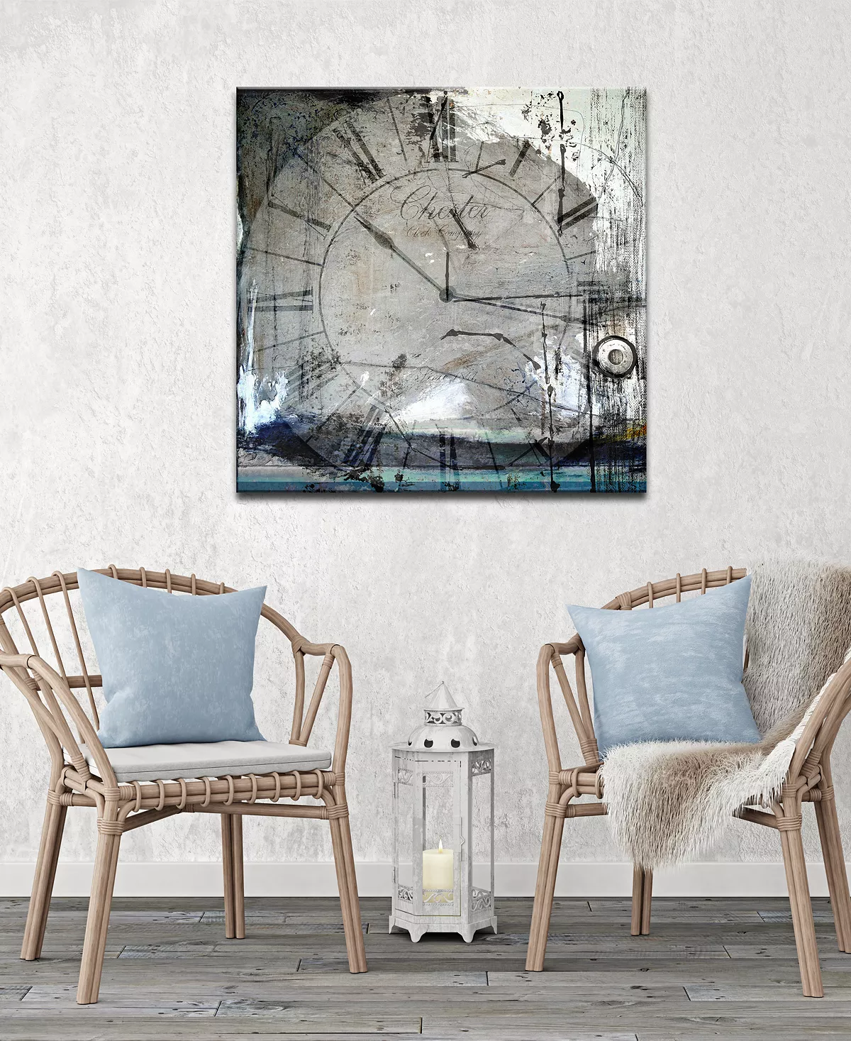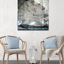 Accent your contemporary wall space with the bold abstract look of Ready2HangArt’s Time canvas art print in distressed shades of white, black, gray and blue.