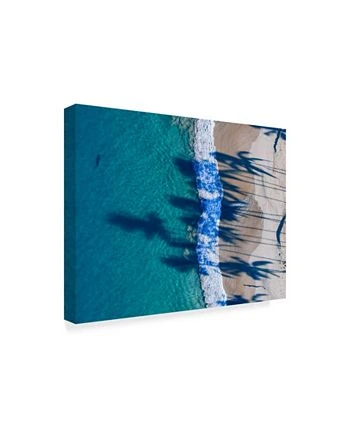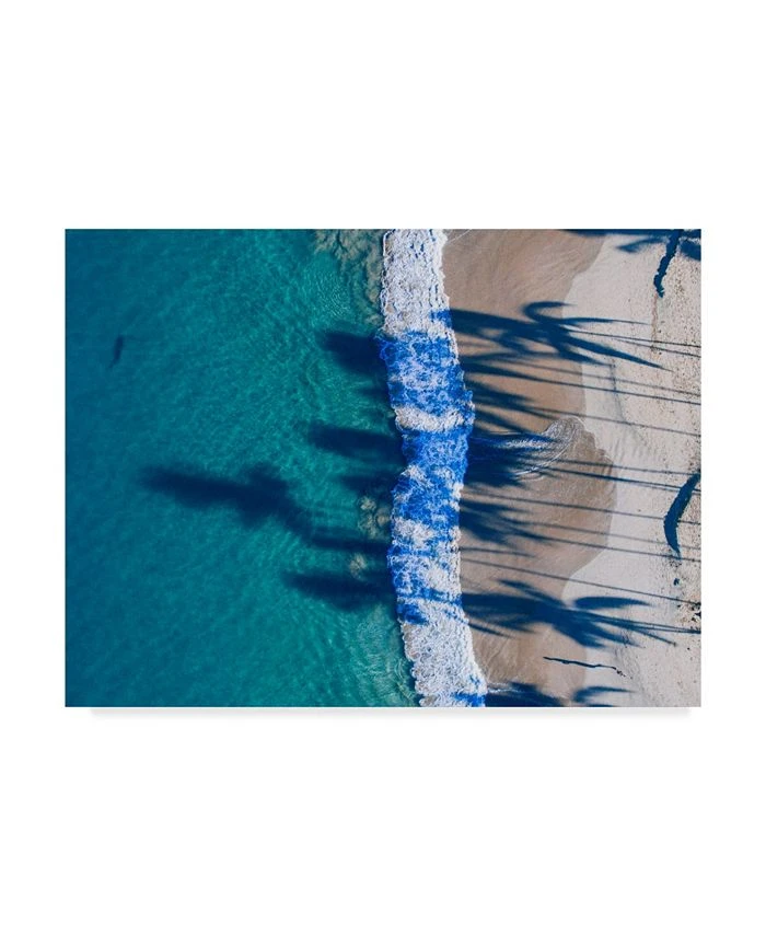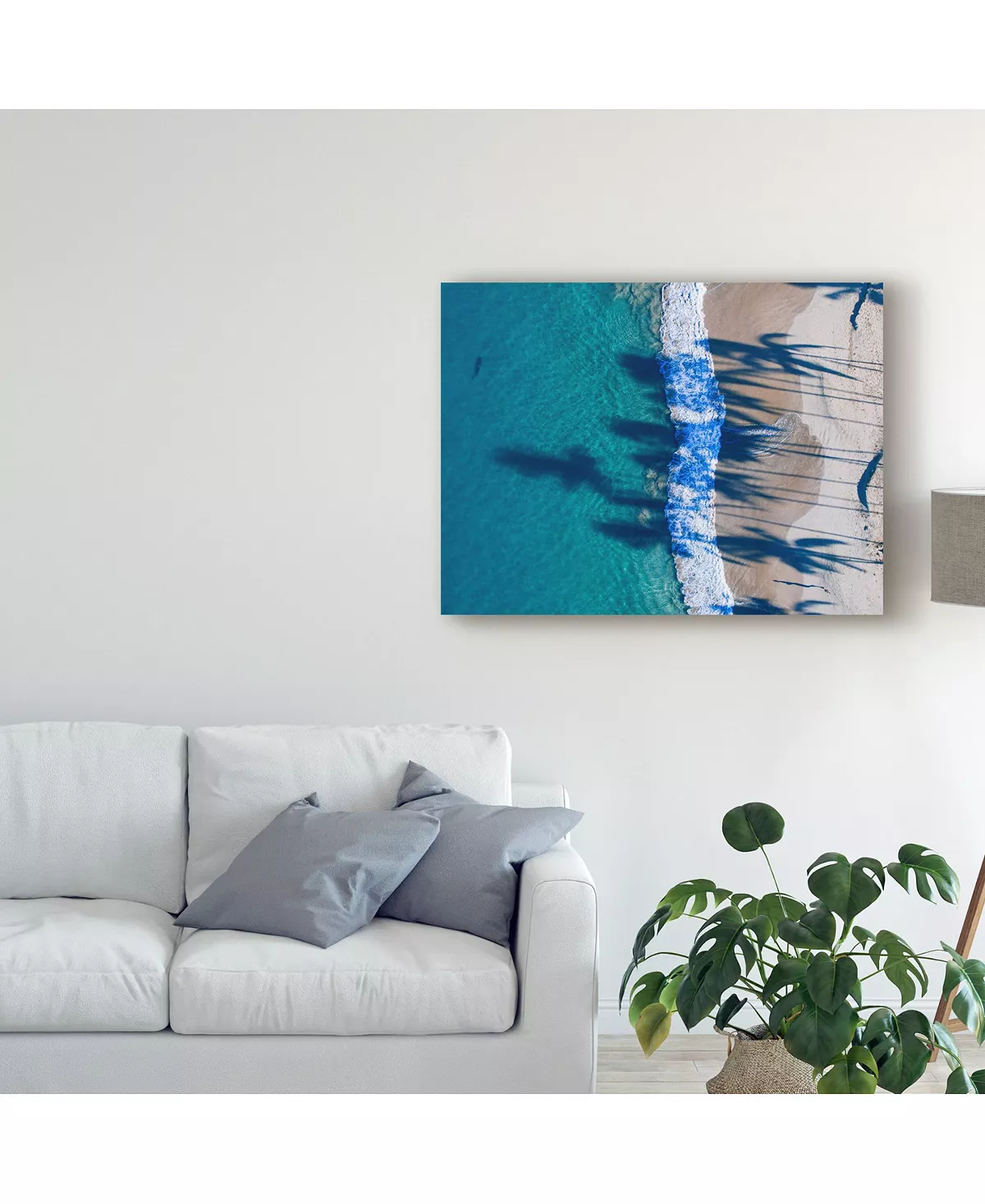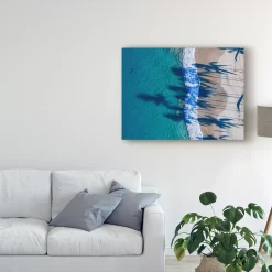 This ready to hang, gallery-wrapped art piece features a coastal landscape cutting down the center of the frame. Gallery-wrap is a method of wrapping an artist’s canvas around a hidden, wooden frame allowing for a frameless presentation.
