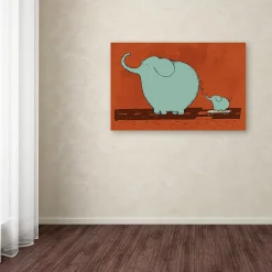 A precious pair of pachyderms is on a roll down a divided road in the ‘Skateboard Elephant’ canvas art print by Carla Martell from Trademark Global that combines serene shades with rusty hues.