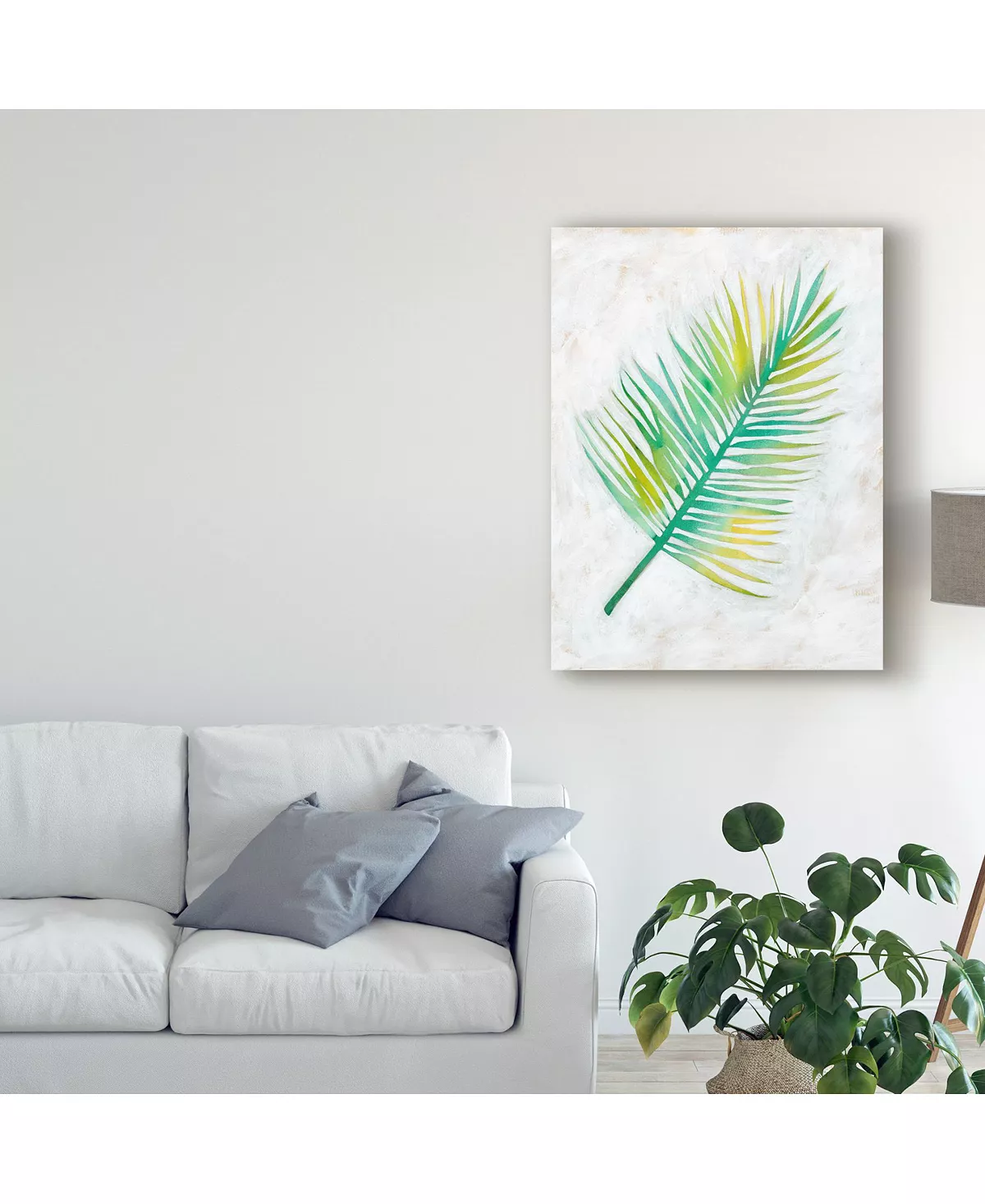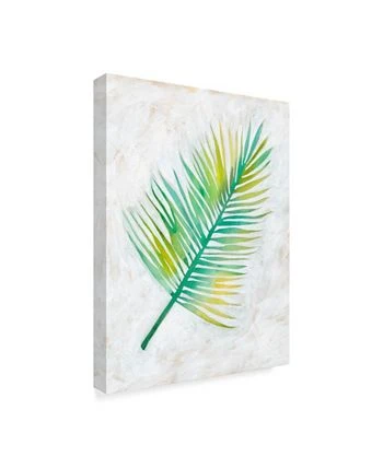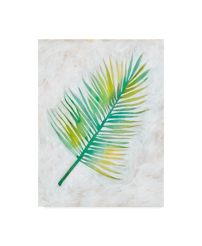 This ready to hang, gallery-wrapped art piece features a blue and green leaf in the center of the frame. Gallery-wrap is a method of wrapping an artist’s canvas around a hidden, wooden frame allowing for a frameless presentation.