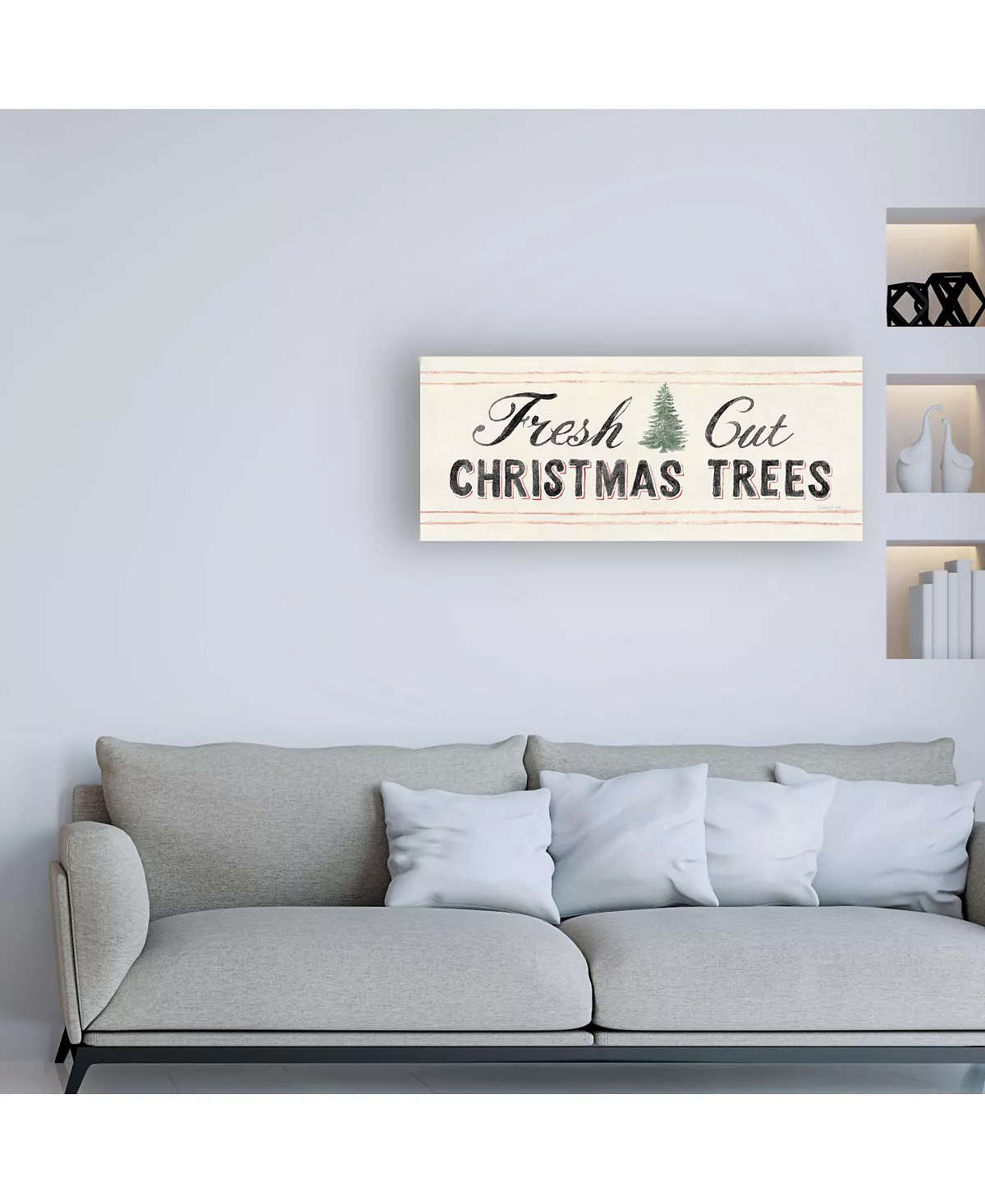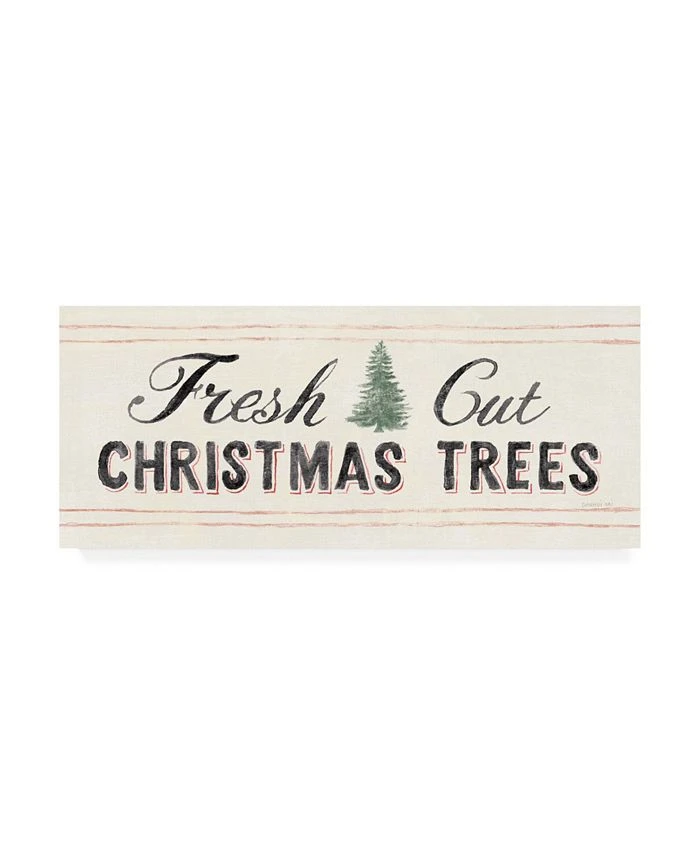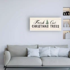 This ready to hang, gallery-wrapped art piece features “Fresh cut Christmas tree” sign on a cream background. Gallery-wrap is a method of wrapping an artist’s canvas around a hidden, wooden frame allowing for a frameless presentation.