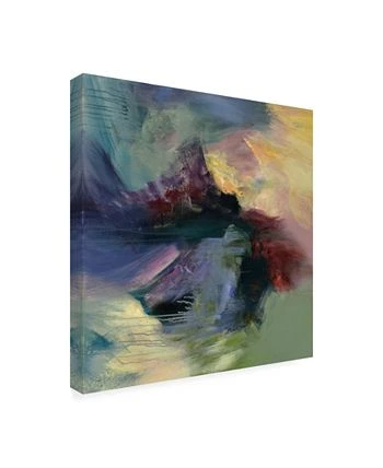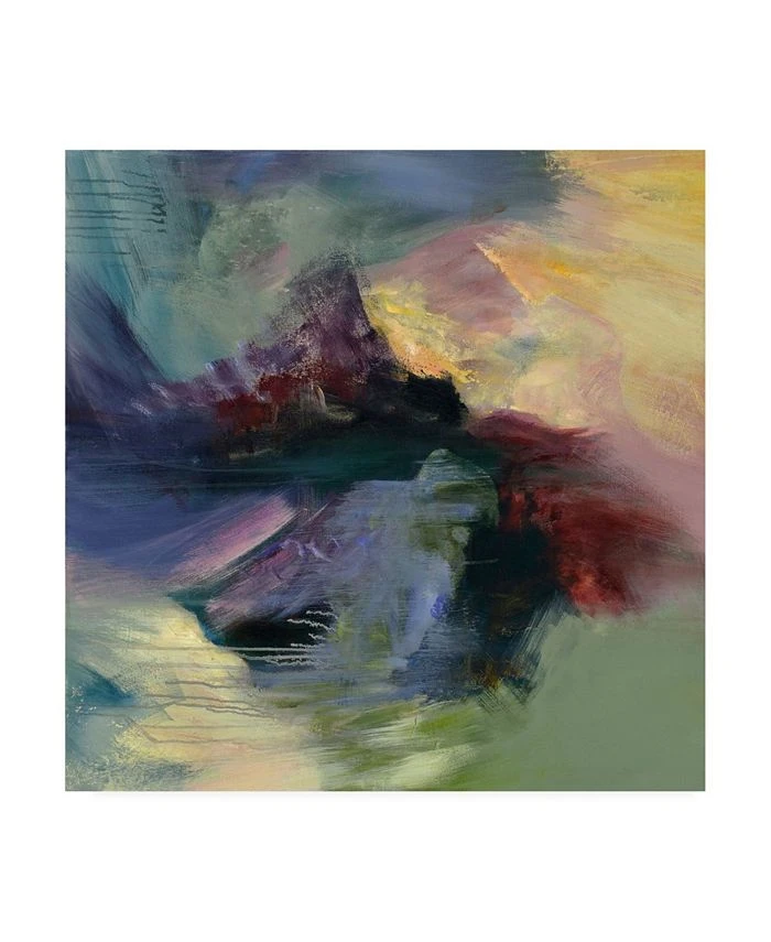 This ready to hang, gallery-wrapped art piece features an abstract painting in white, green and red. Gallery-wrap is a method of wrapping an artist’s canvas around a hidden, wooden frame allowing for a frameless presentation.