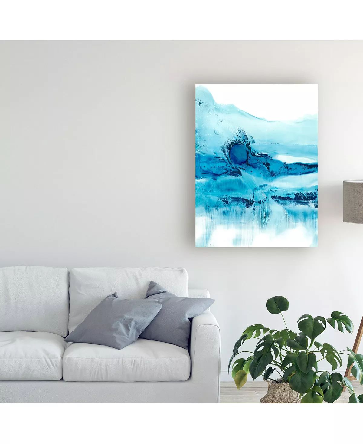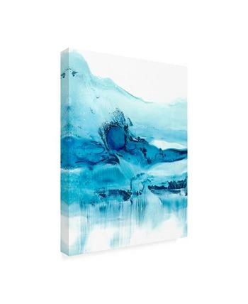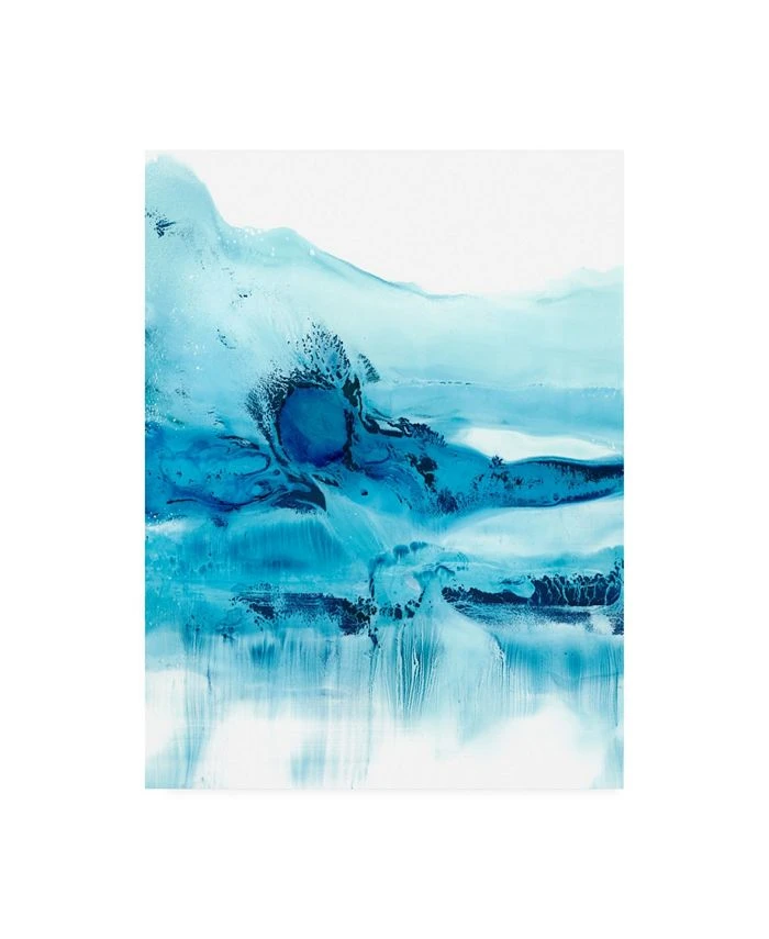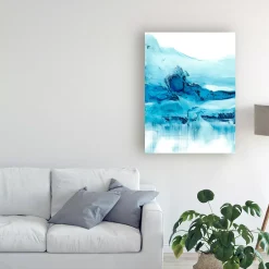 This ready to hang, gallery-wrapped art piece features cloudy blue paint over a white background. Gallery-wrap is a method of wrapping an artist’s canvas around a hidden, wooden frame allowing for a frameless presentation.