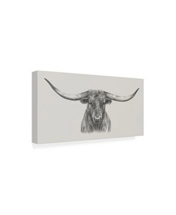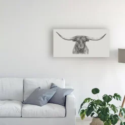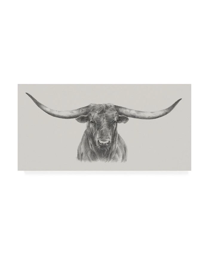 This ready to hang, gallery-wrapped art piece features an illustration of a bull in the center of the frame. Gallery-wrap is a method of wrapping an artist’s canvas around a hidden, wooden frame allowing for a frameless presentation.