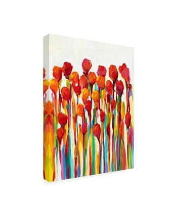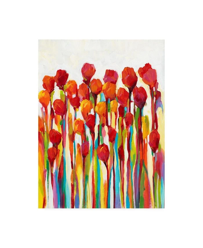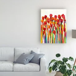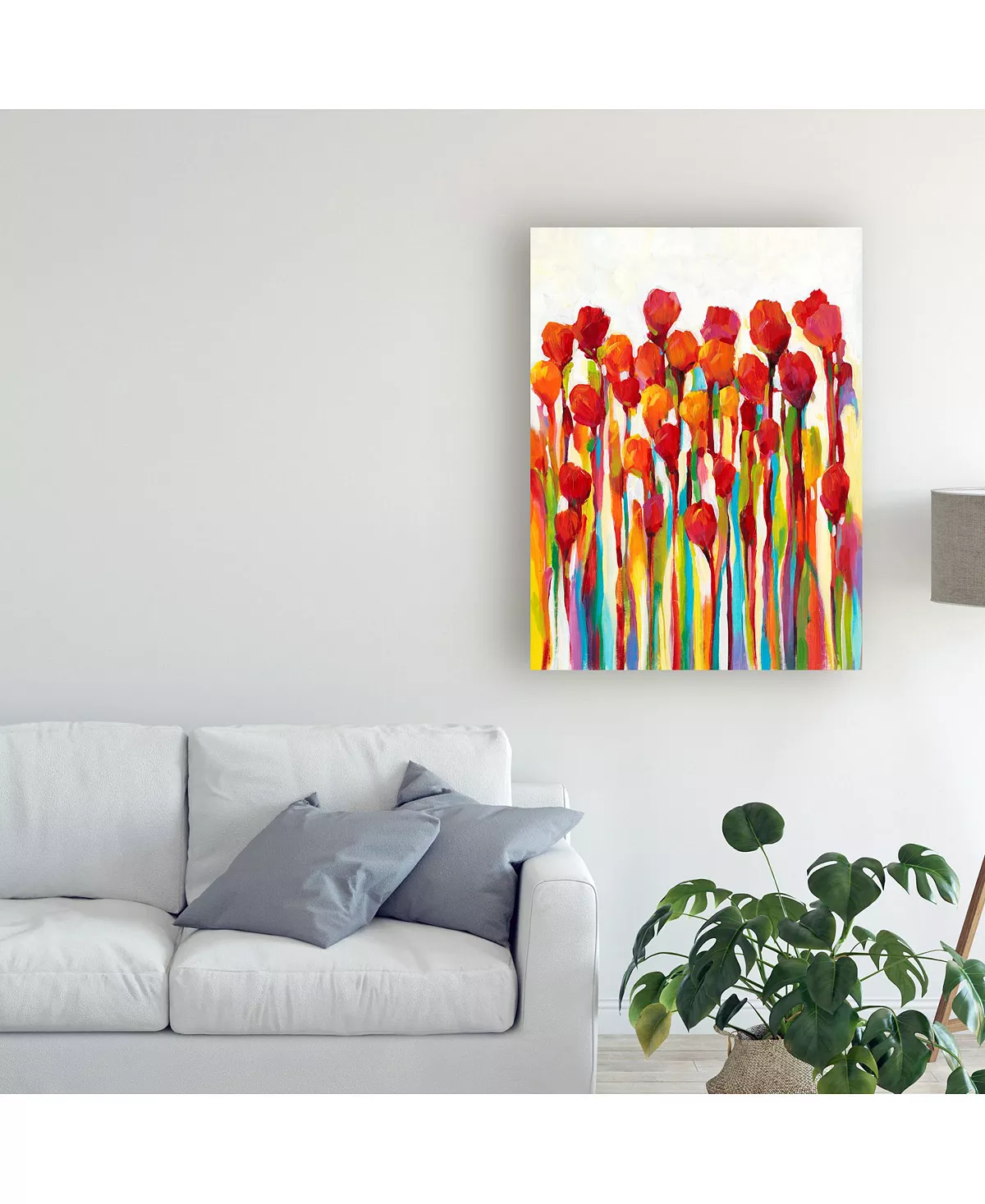This ready to hang, gallery-wrapped art piece features colorful drips of paint running down the frame. Gallery-wrap is a method of wrapping an artist’s canvas around a hidden, wooden frame allowing for a frameless presentation.