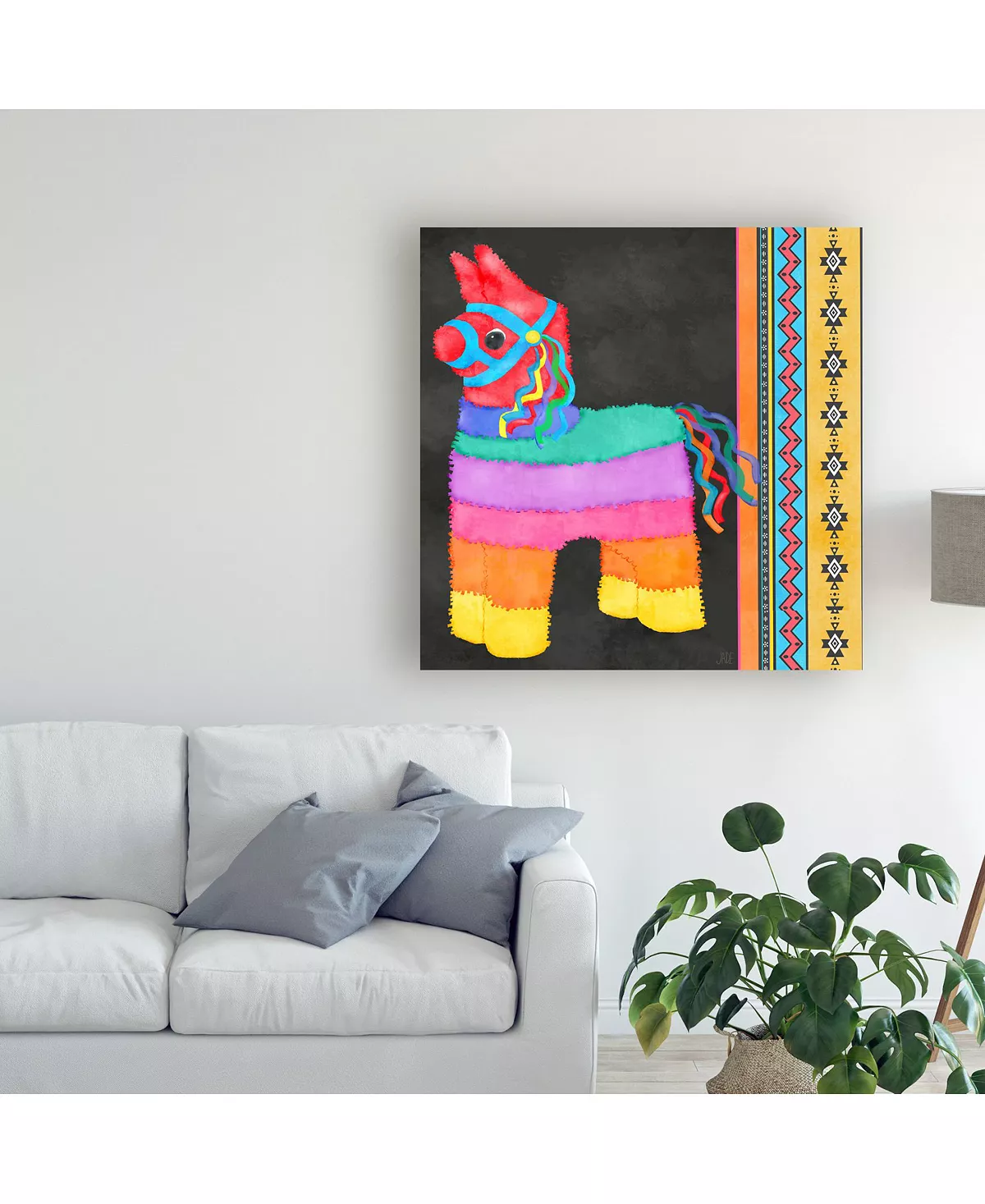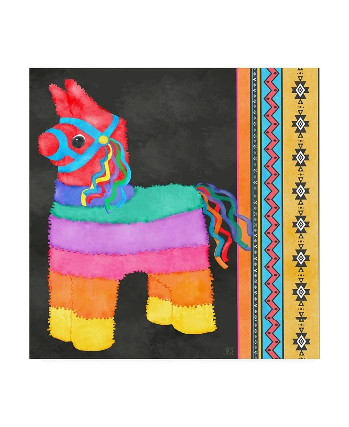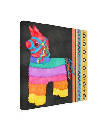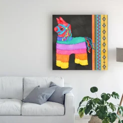 This ready to hang, gallery-wrapped art piece features a bright pinata over a black background. Gallery-wrap is a method of wrapping an artist’s canvas around a hidden, wooden frame allowing for a frameless presentation.