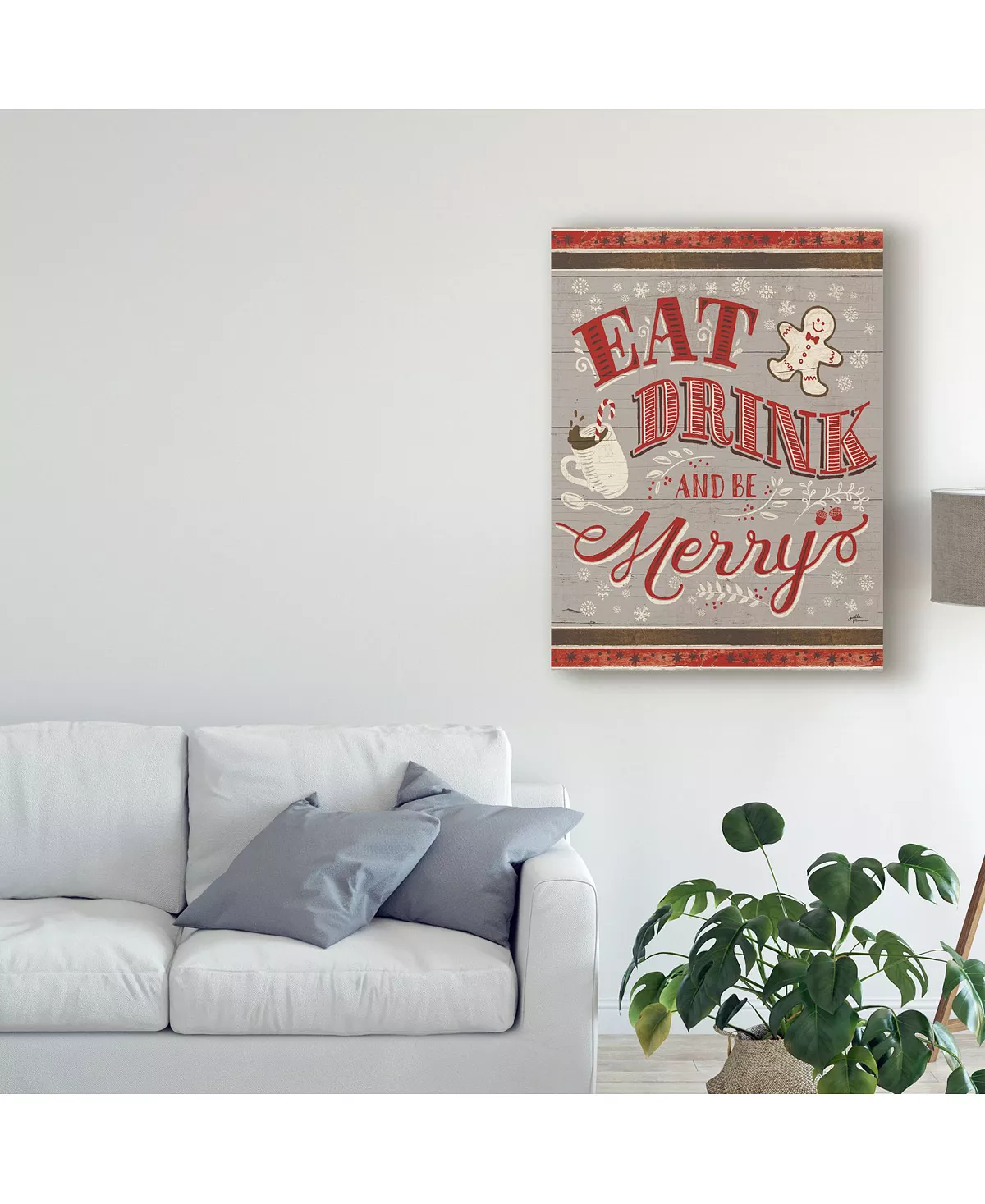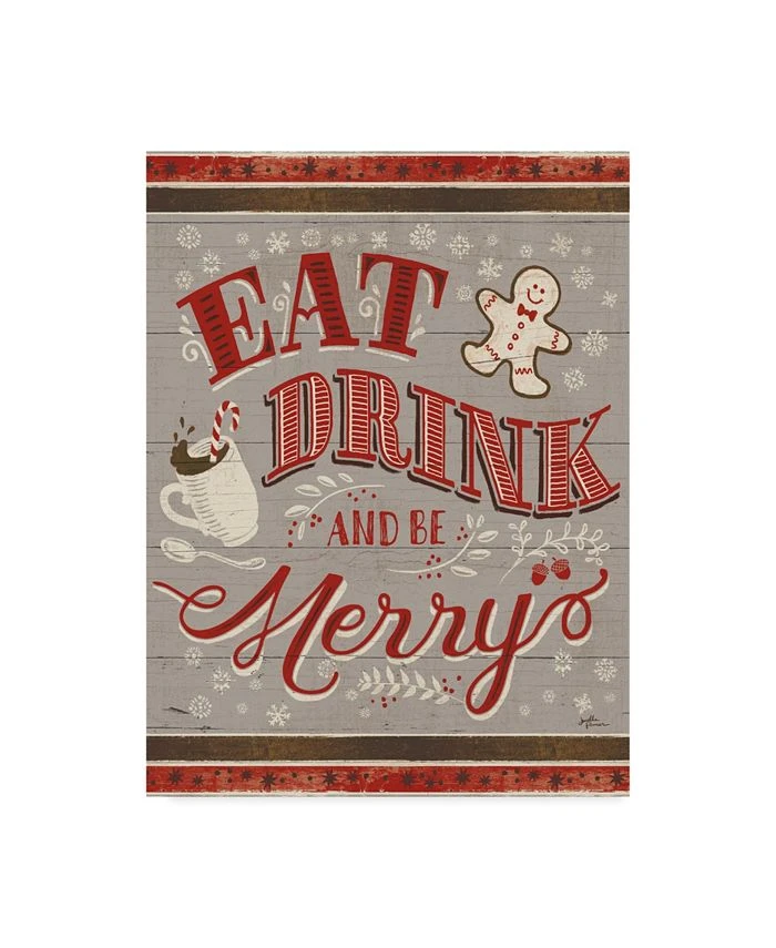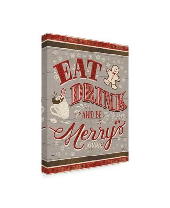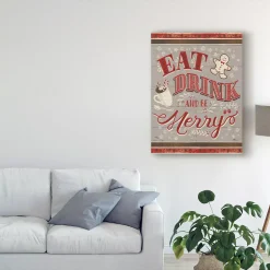 This ready to hang, gallery-wrapped art piece features the words “Eat, Drink, and be Merry” in red and white on grey wood panels. Gallery-wrap is a method of wrapping an artist’s canvas around a hidden, wooden frame allowing for a frameless presentation.