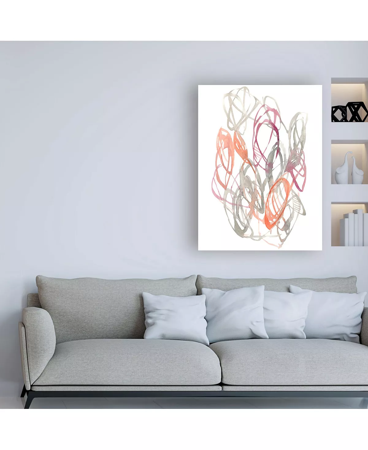 This ready to hang, gallery-wrapped art piece features gray and pink line art of a plant over a white background. Gallery-wrap is a method of wrapping an artist’s canvas around a hidden, wooden frame allowing for a frameless presentation.