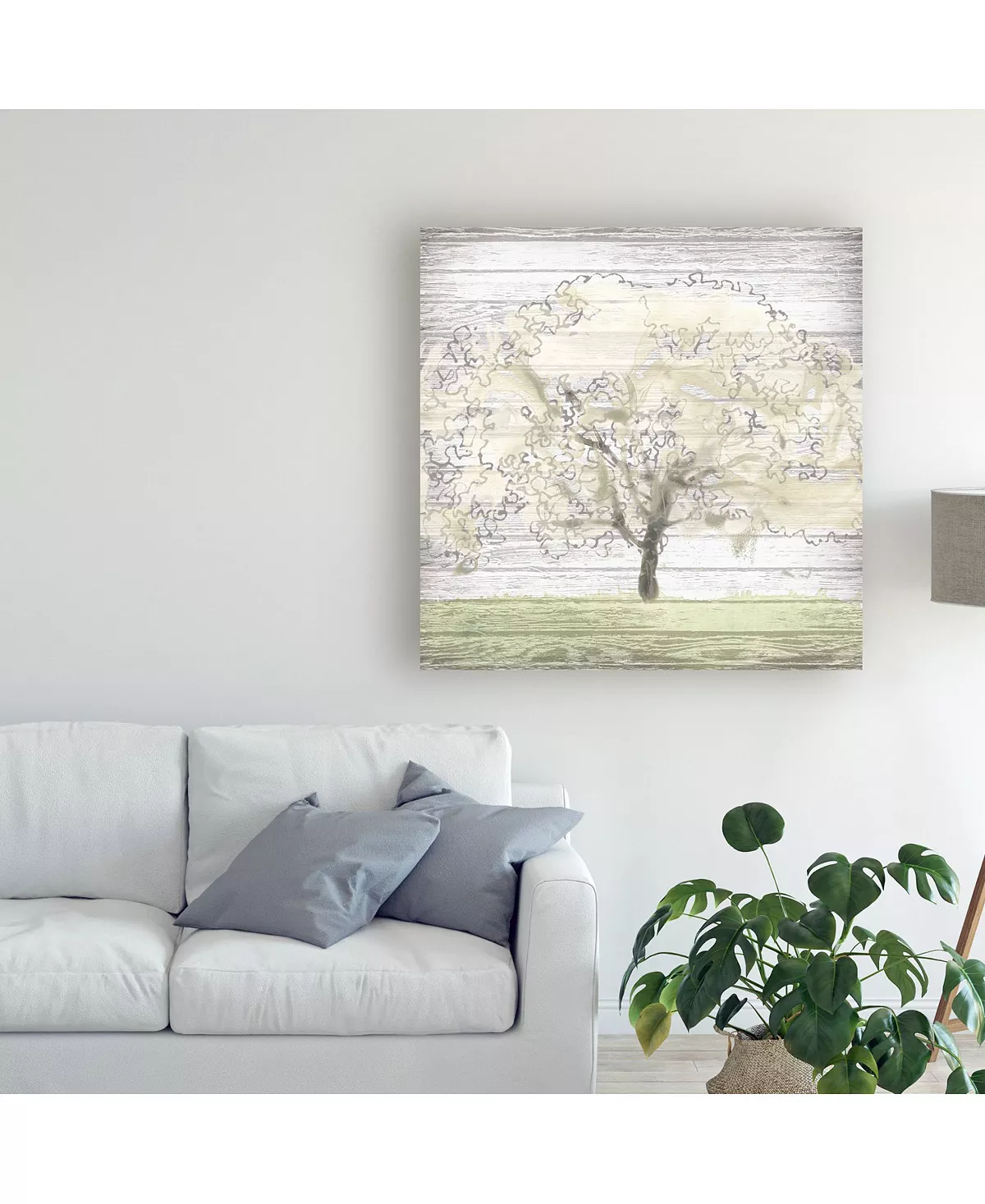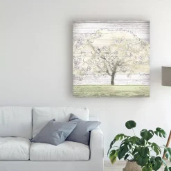 This ready to hang, gallery-wrapped art piece features a large yellow tree in the center of the frame. Gallery-wrap is a method of wrapping an artist’s canvas around a hidden, wooden frame allowing for a frameless presentation.