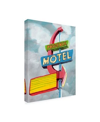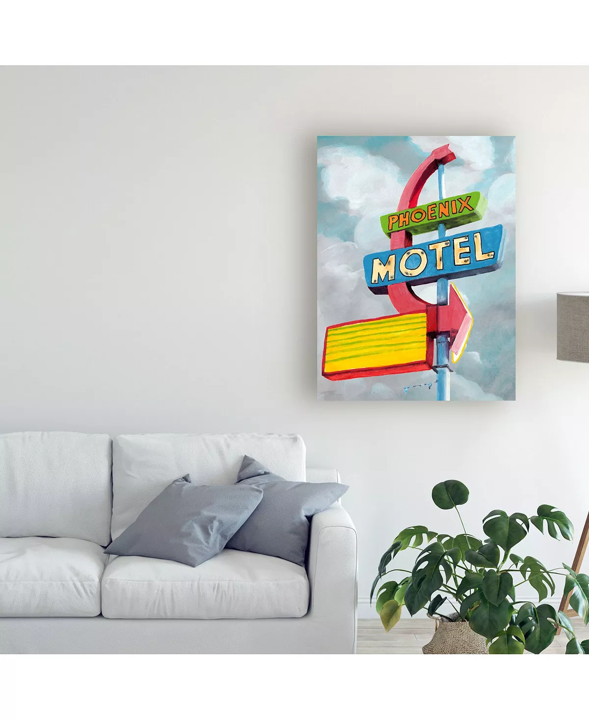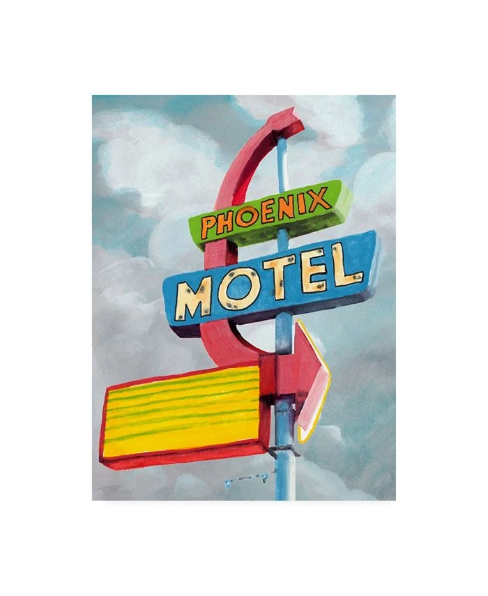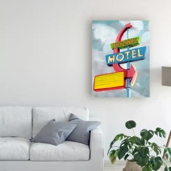 This ready to hang, gallery-wrapped art piece features a colorful sign over a cloudy sky. Gallery-wrap is a method of wrapping an artist’s canvas around a hidden, wooden frame allowing for a frameless presentation.