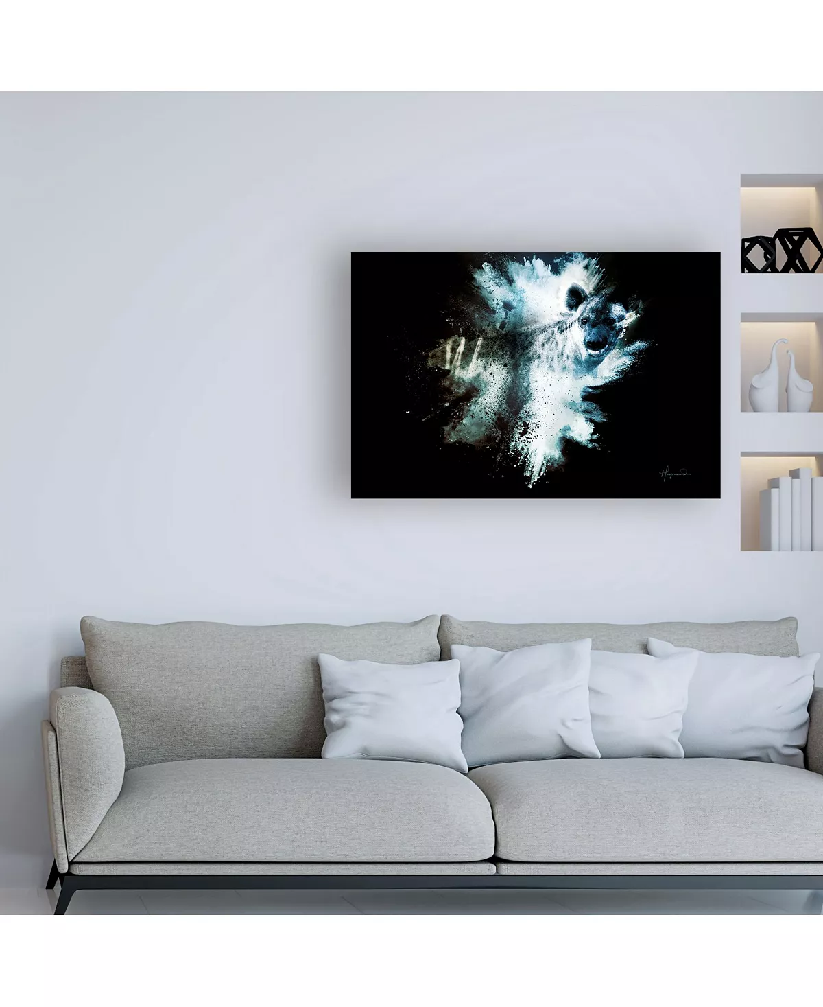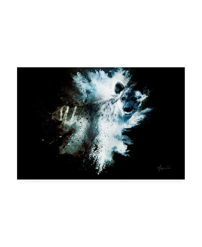 This ready to hang, gallery-wrapped art piece features a hyena with a paint explosion on a black background. Gallery-wrap is a method of wrapping an artist’s canvas around a hidden, wooden frame allowing for a frameless presentation.
