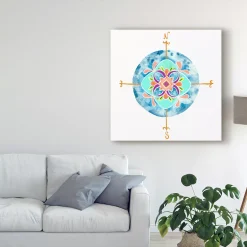 This ready to hang, gallery-wrapped art piece features a colorful circle of flowers in the center of the frame. Gallery-wrap is a method of wrapping an artist’s canvas around a hidden, wooden frame allowing for a frameless presentation.