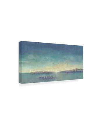 This ready to hang, gallery-wrapped art piece features a tranquil abstract seascape of an island in the ocean. Gallery-wrap is a method of wrapping an artist’s canvas around a hidden, wooden frame allowing for a frameless presentation.